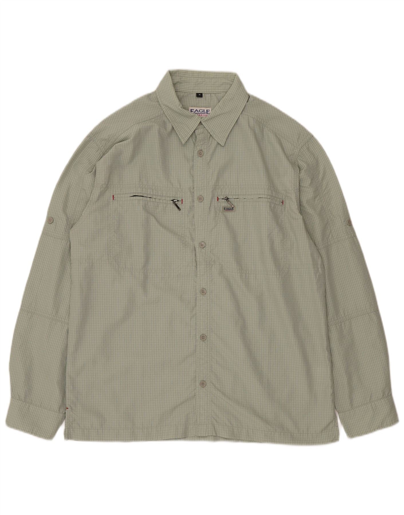 Мужская рубашка VINTAGE среднего зеленого цвета в мелкую клетку из полиамида