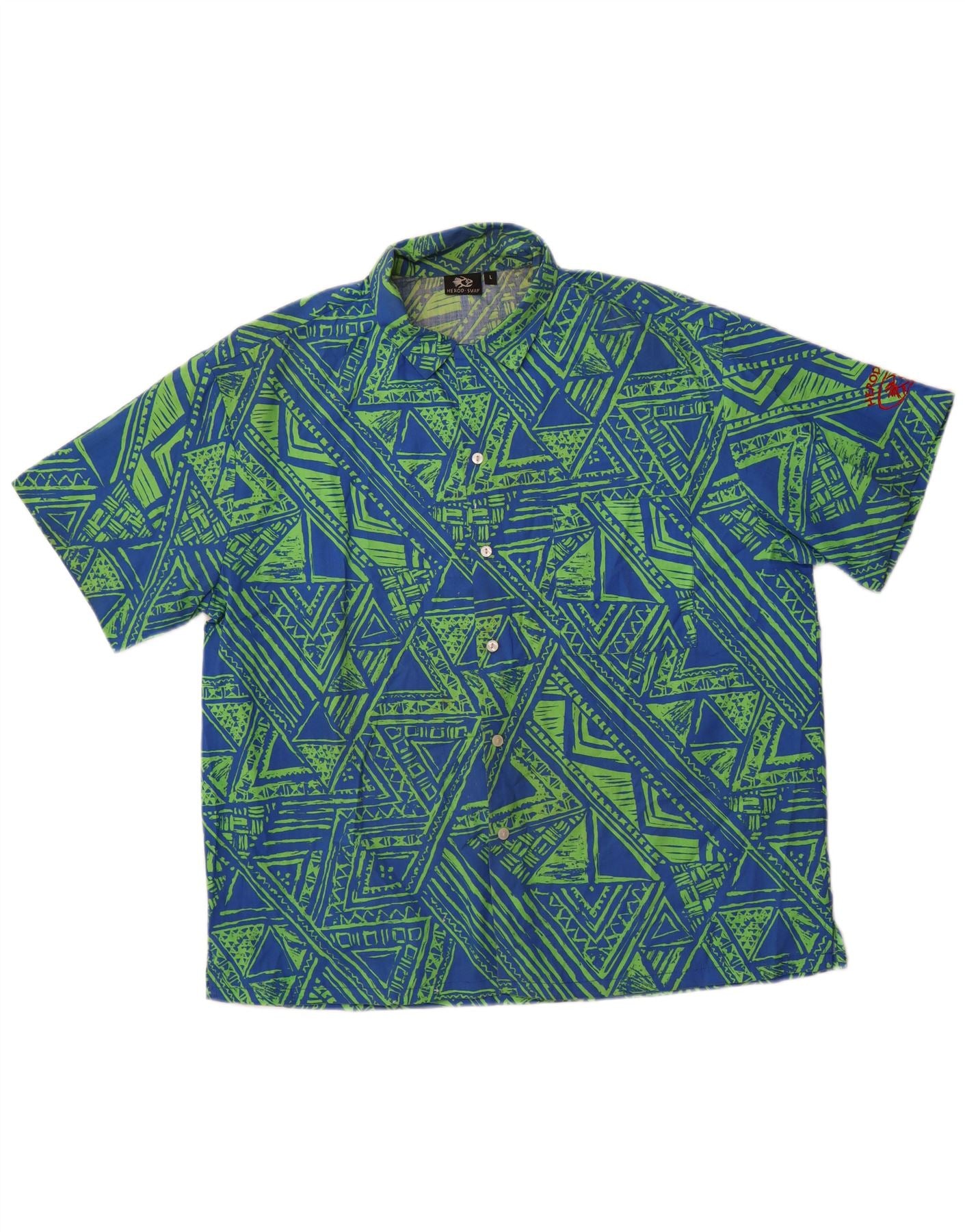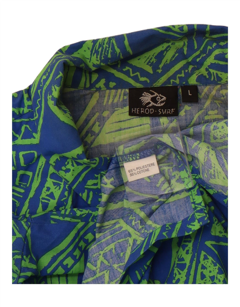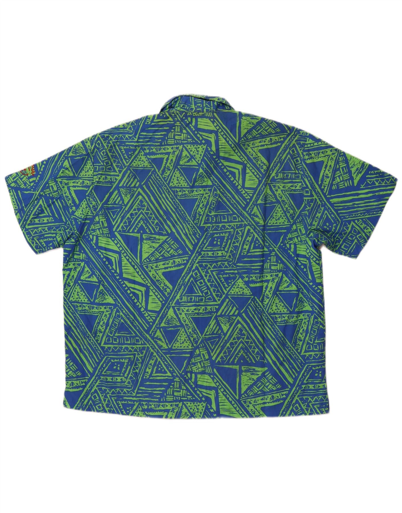 VINTAGE Мужская рубашка с коротким рукавом, большая синяя, полиэстер с геометрическим рисунком