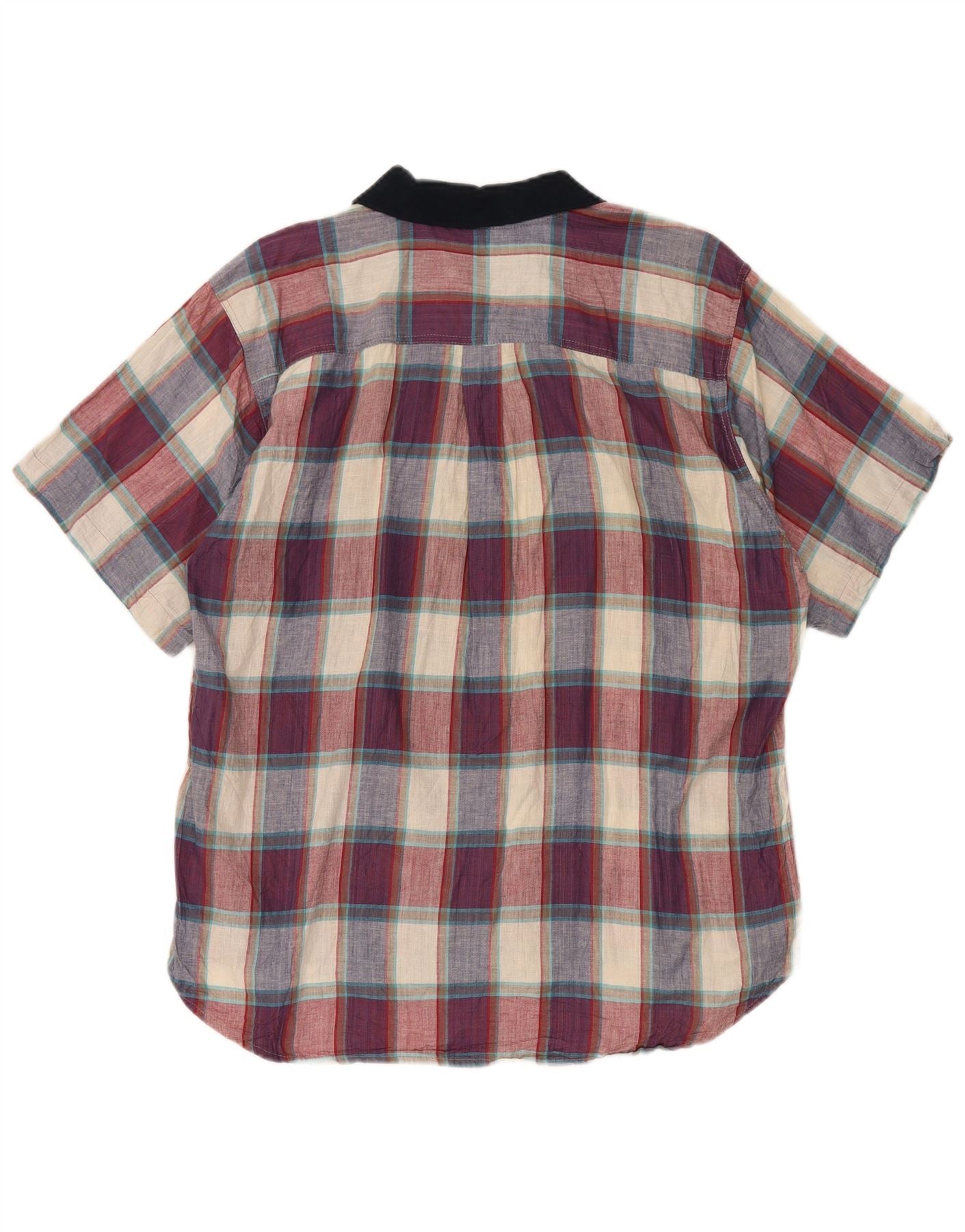 Винтажная мужская рубашка с коротким рукавом, большая разноцветная клетка, хлопок