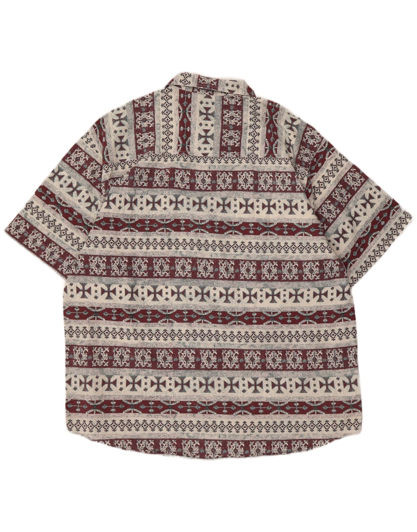 Винтажная мужская рубашка с коротким рукавом XL бордового цвета с геометрическим рисунком ацтеков