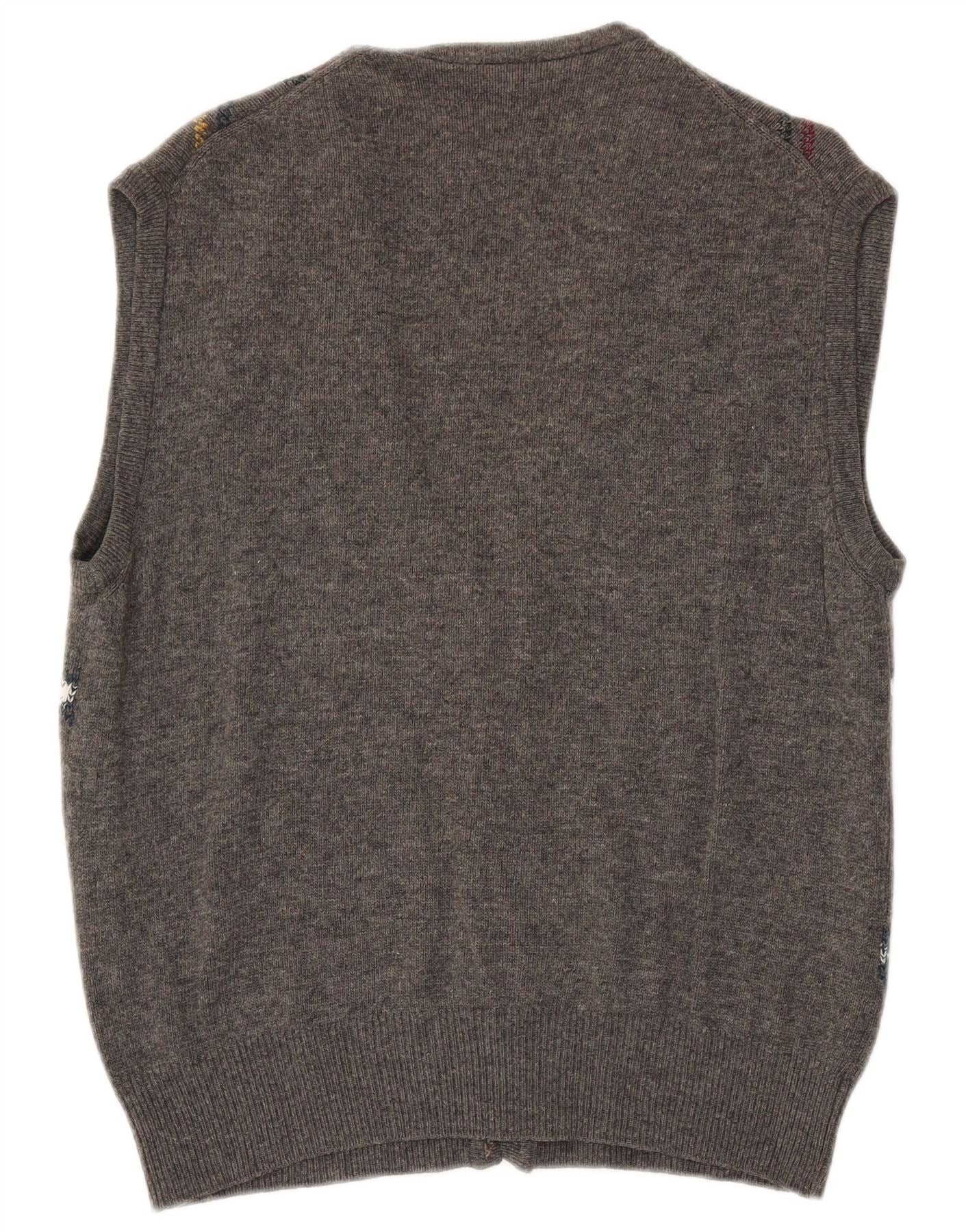 VINTAGE Мужской кардиган без рукавов, большой серый аргайл/ромб