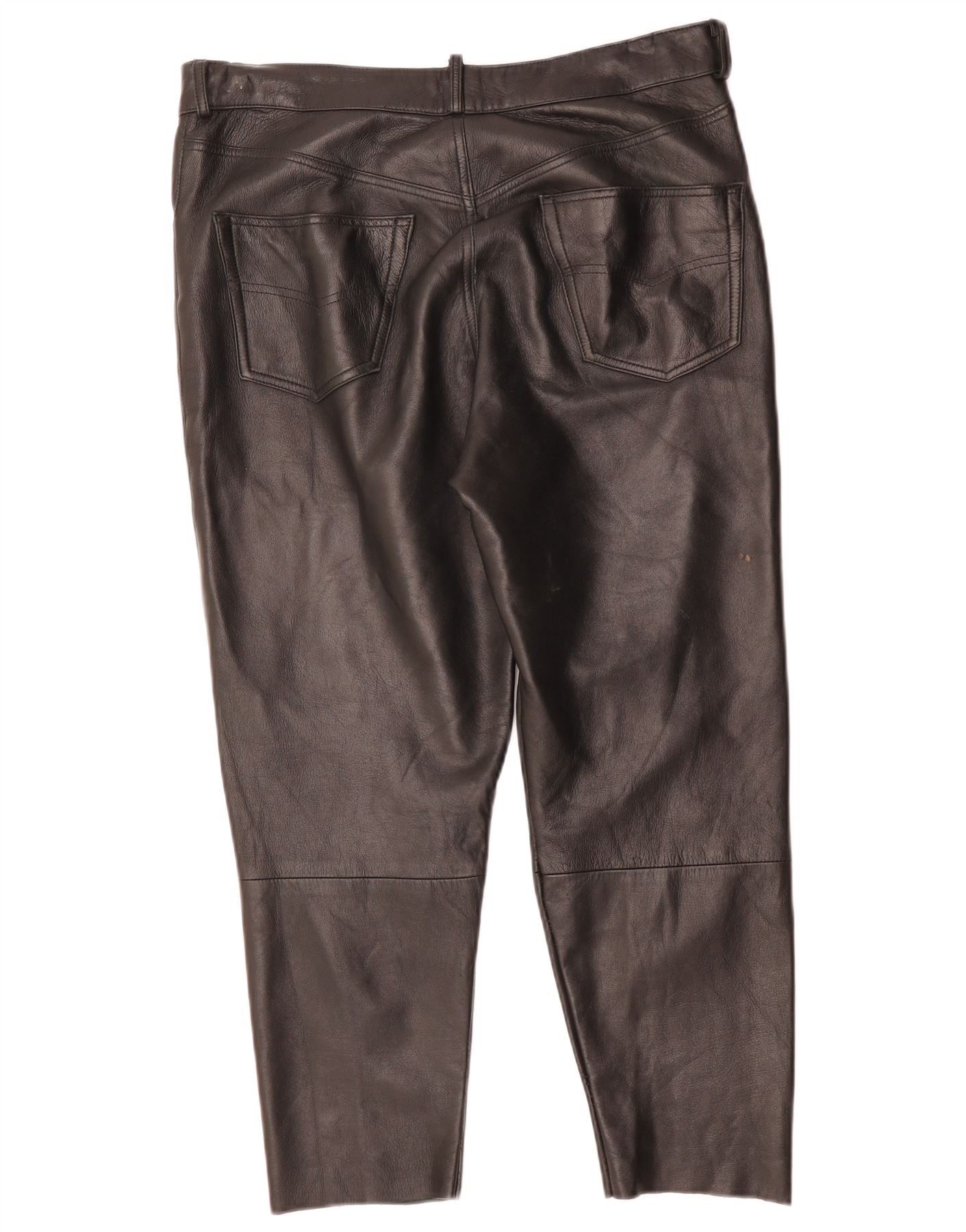 VINTAGE Мужские прямые кожаные укороченные брюки IT 48 Medium W34 L25 Черные