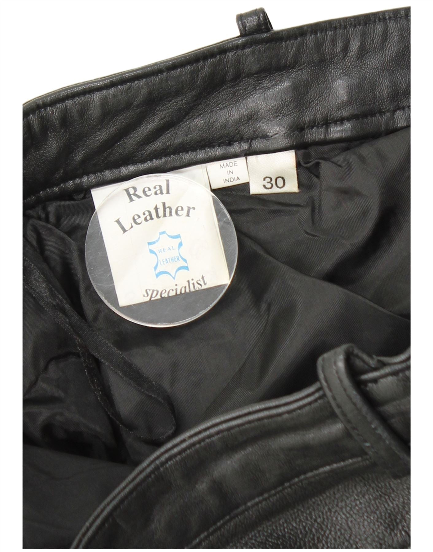 ВИНТАЖНЫЕ мужские прямые кожаные брюки W30 L32 черные кожаные