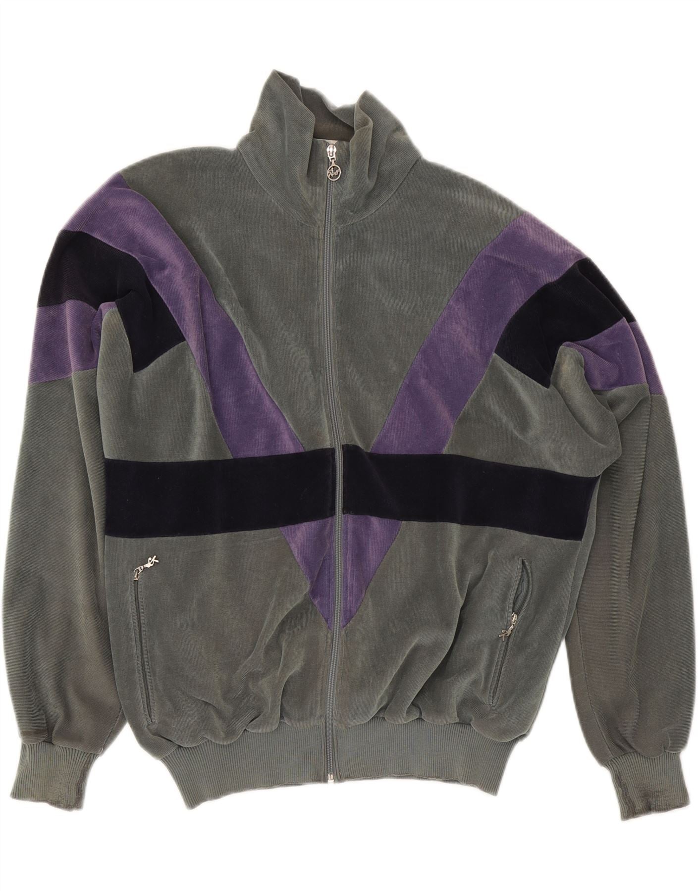 VINTAGE Mens Tracksuit Top Jacket IT 52 Large Grey Colourblock Cotton