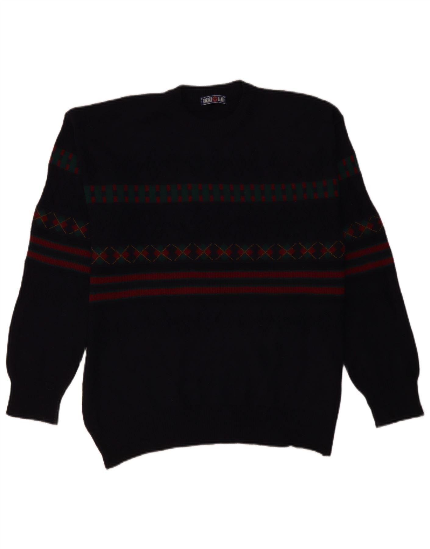 Мужской джемпер с высоким воротником VINTAGE IT 50, большой темно-синий с геометрическим узором