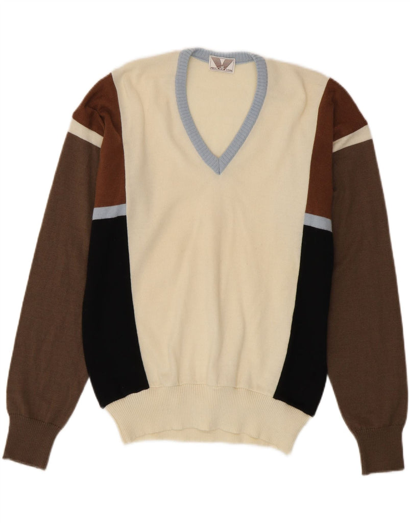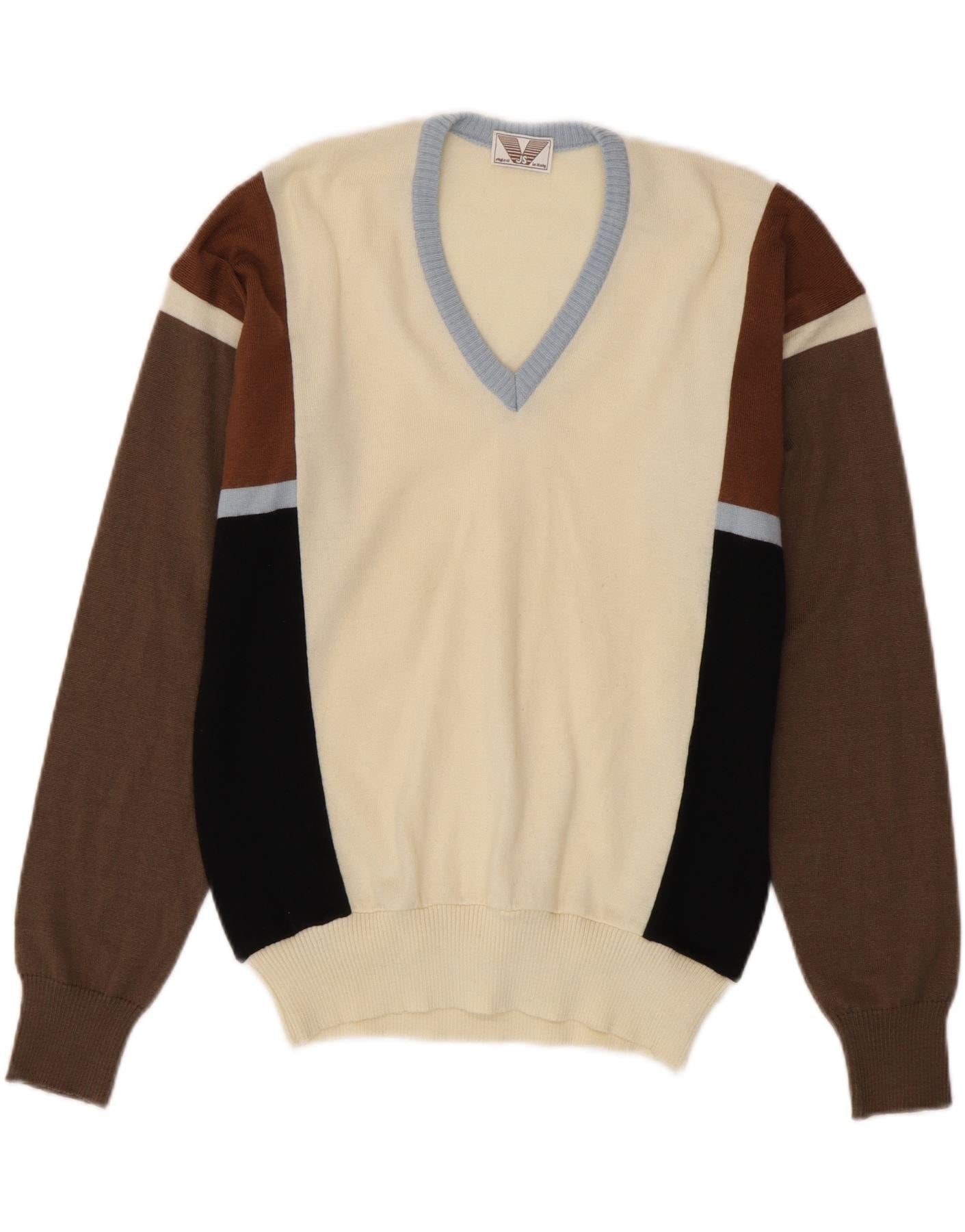 VINTAGE Мужской джемпер с v-образным вырезом IT 50, средний разноцветный, цветной блок
