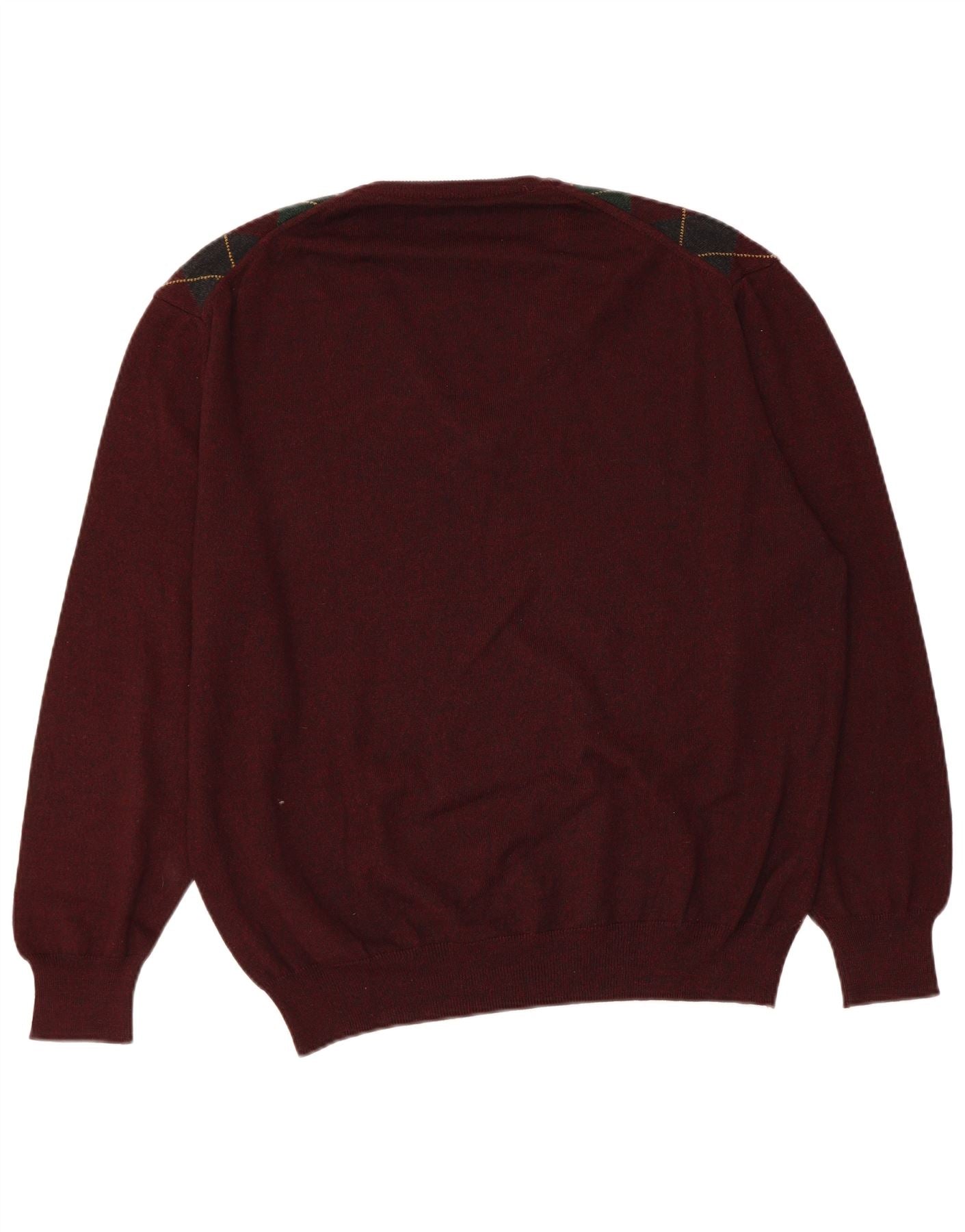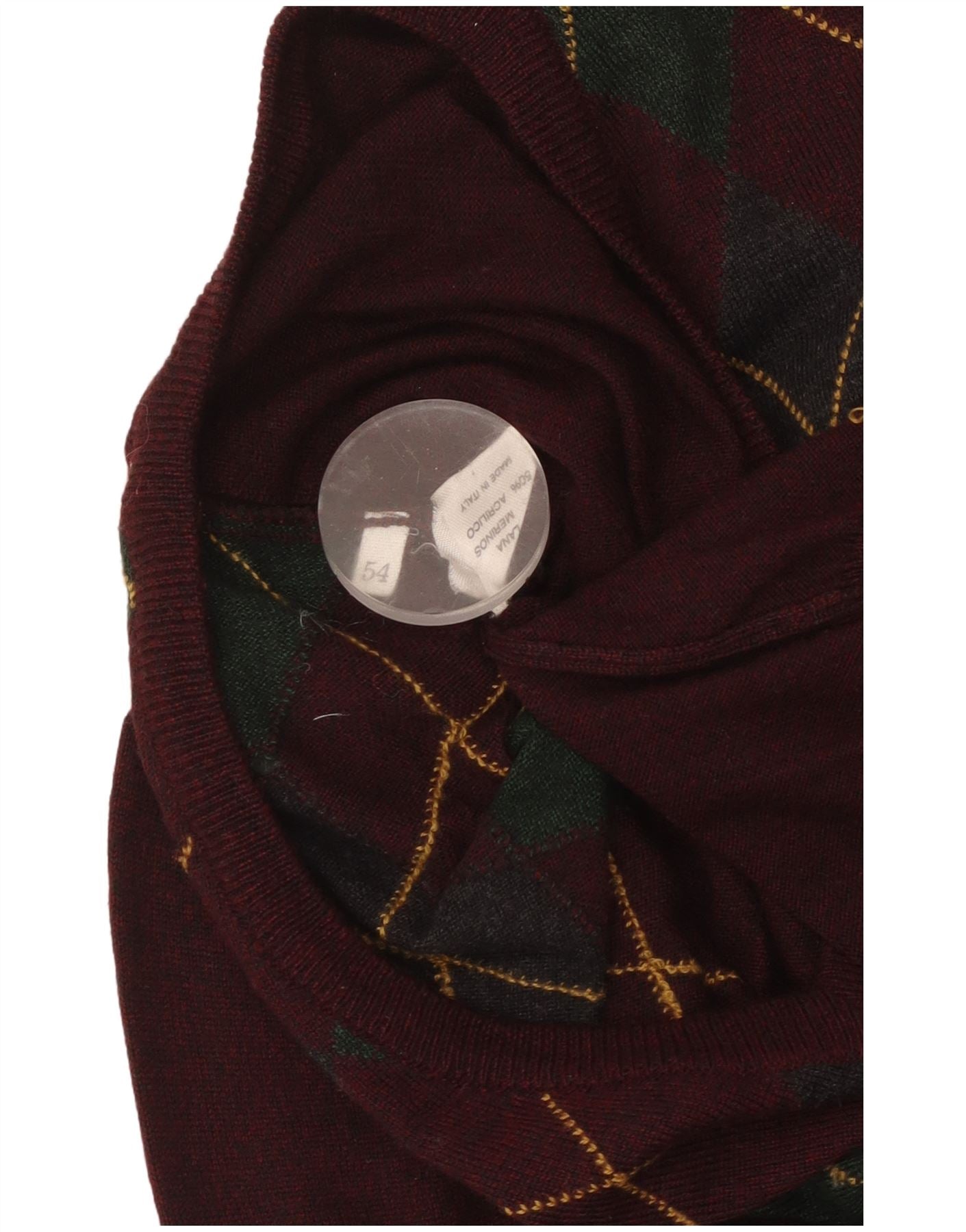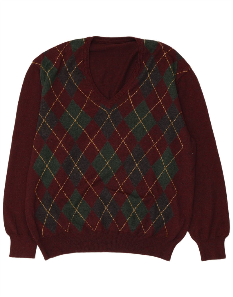 VINTAGE Мужской джемпер с v-образным вырезом IT 54 XL Бордовый Argyle/Diamond Wool