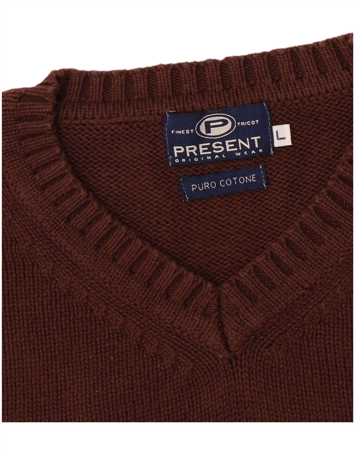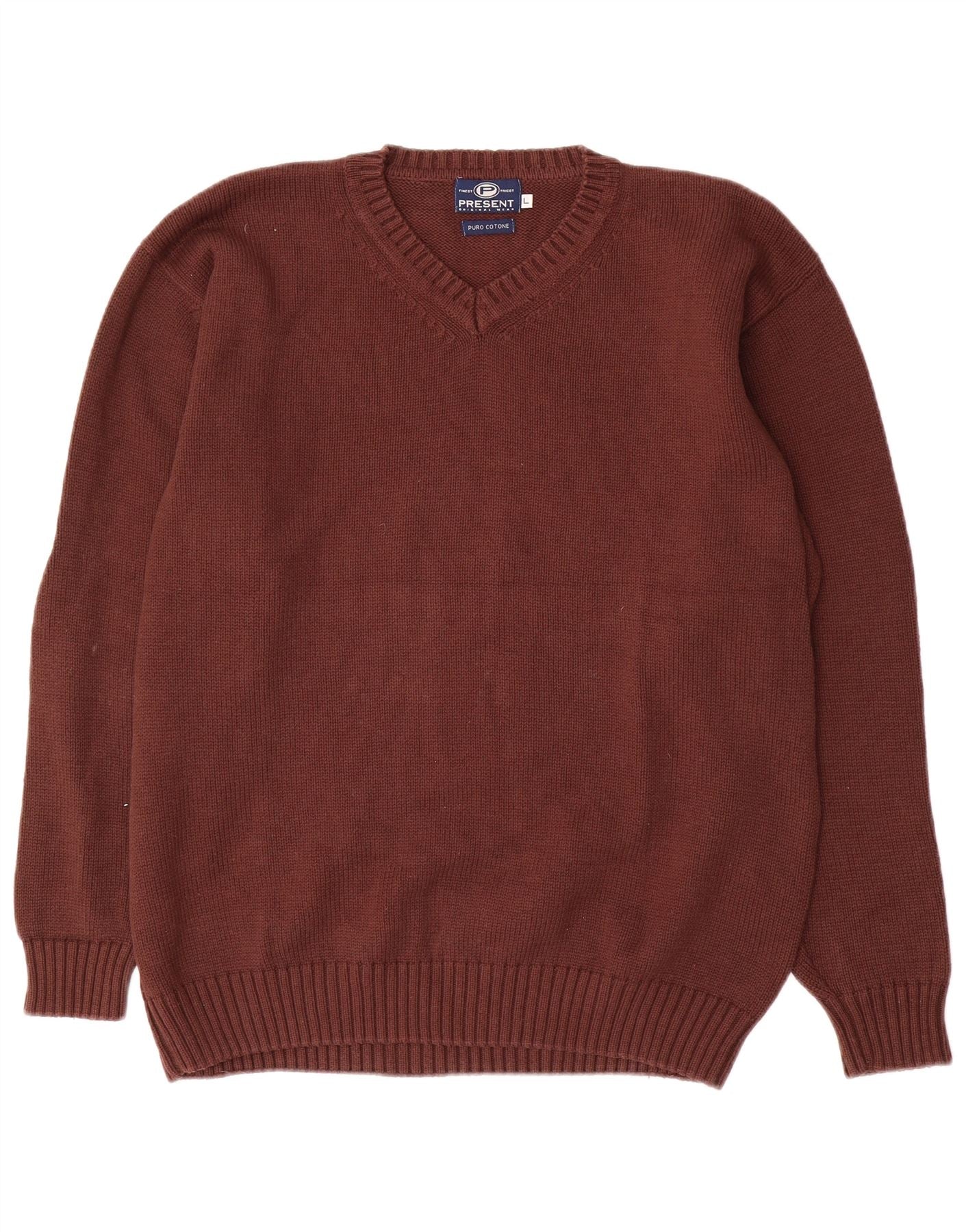 ВИНТАЖНЫЙ мужской джемпер с v-образным вырезом, большой коричневый хлопковый свитер