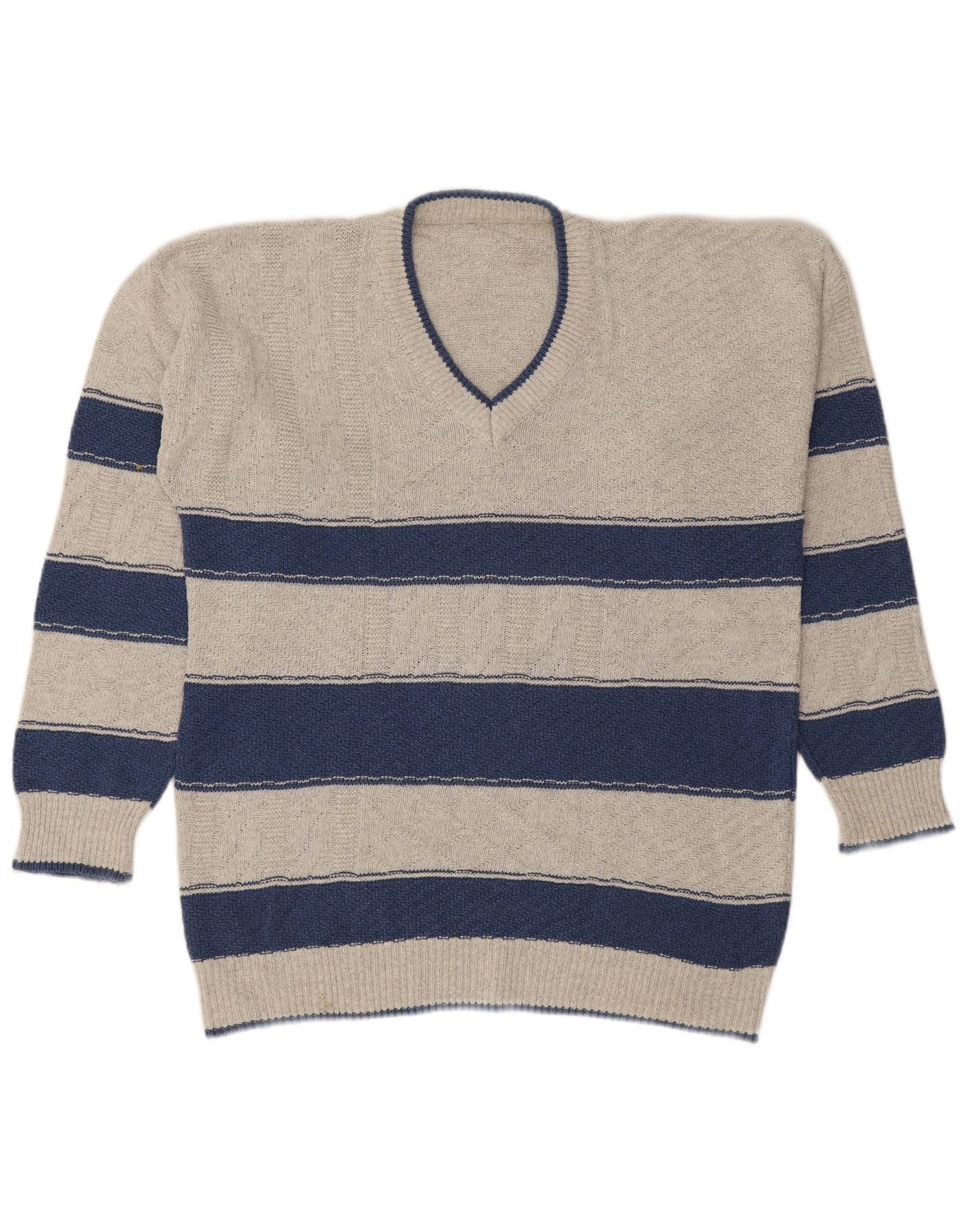 ВИНТАЖНЫЙ мужской джемпер с v-образным вырезом, большой серый в полоску
