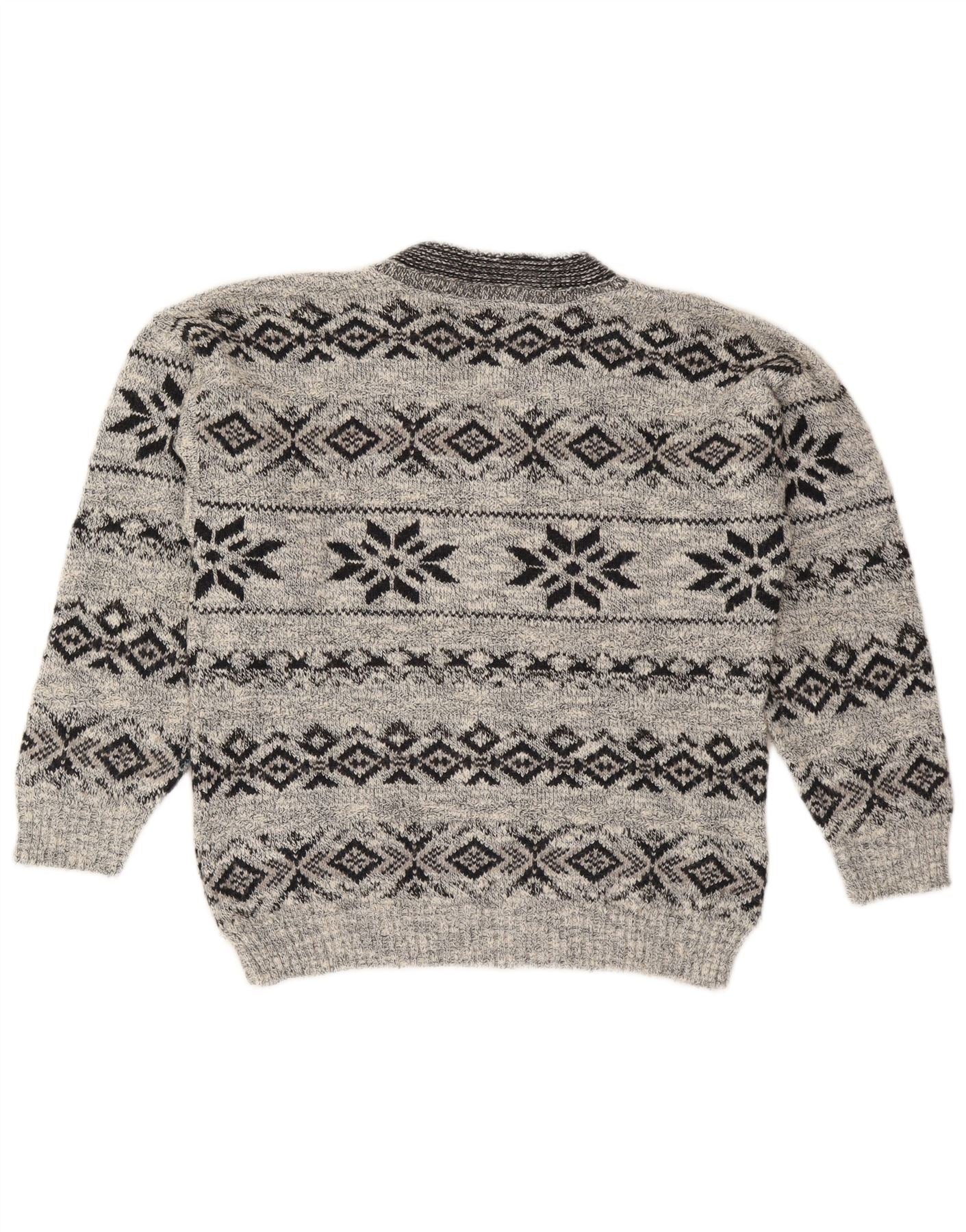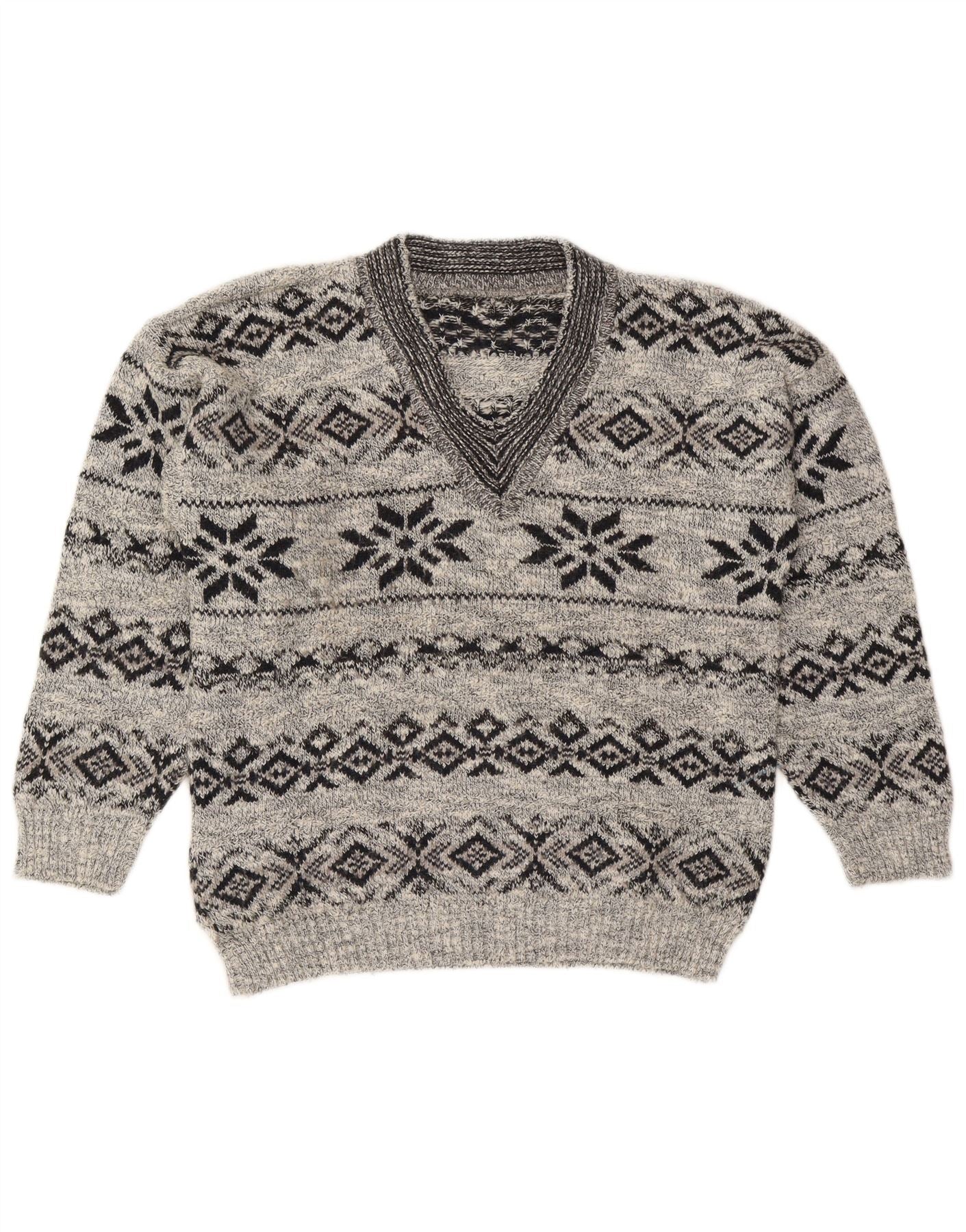 ВИНТАЖНЫЙ мужской джемпер с v-образным вырезом, свитер среднего серого цвета из шерсти Fair Isle