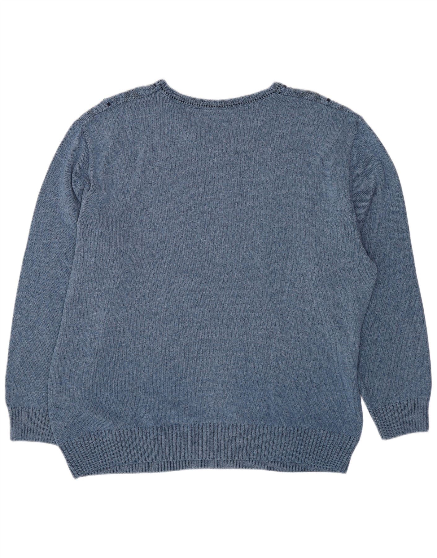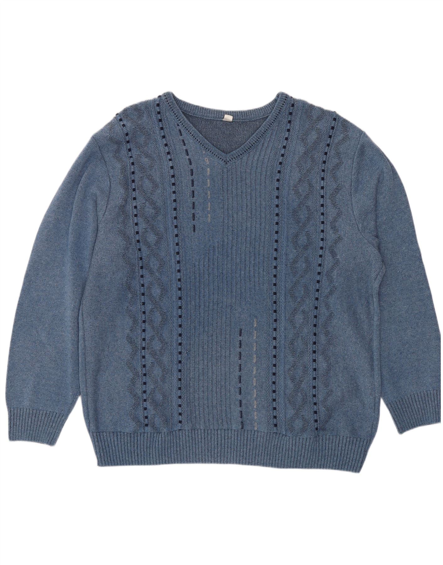 ВИНТАЖНЫЙ мужской джемпер с v-образным вырезом, Великобритания, размер 44 XL, синий хлопок с геометрическим рисунком