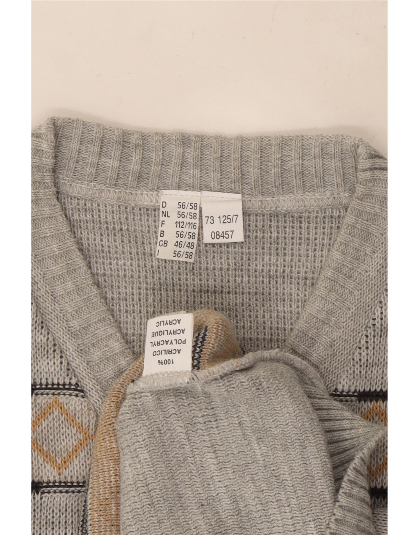 ВИНТАЖНЫЙ мужской джемпер с v-образным вырезом, Великобритания, 46/48, 2XL, серый аргайл/бриллиантовый