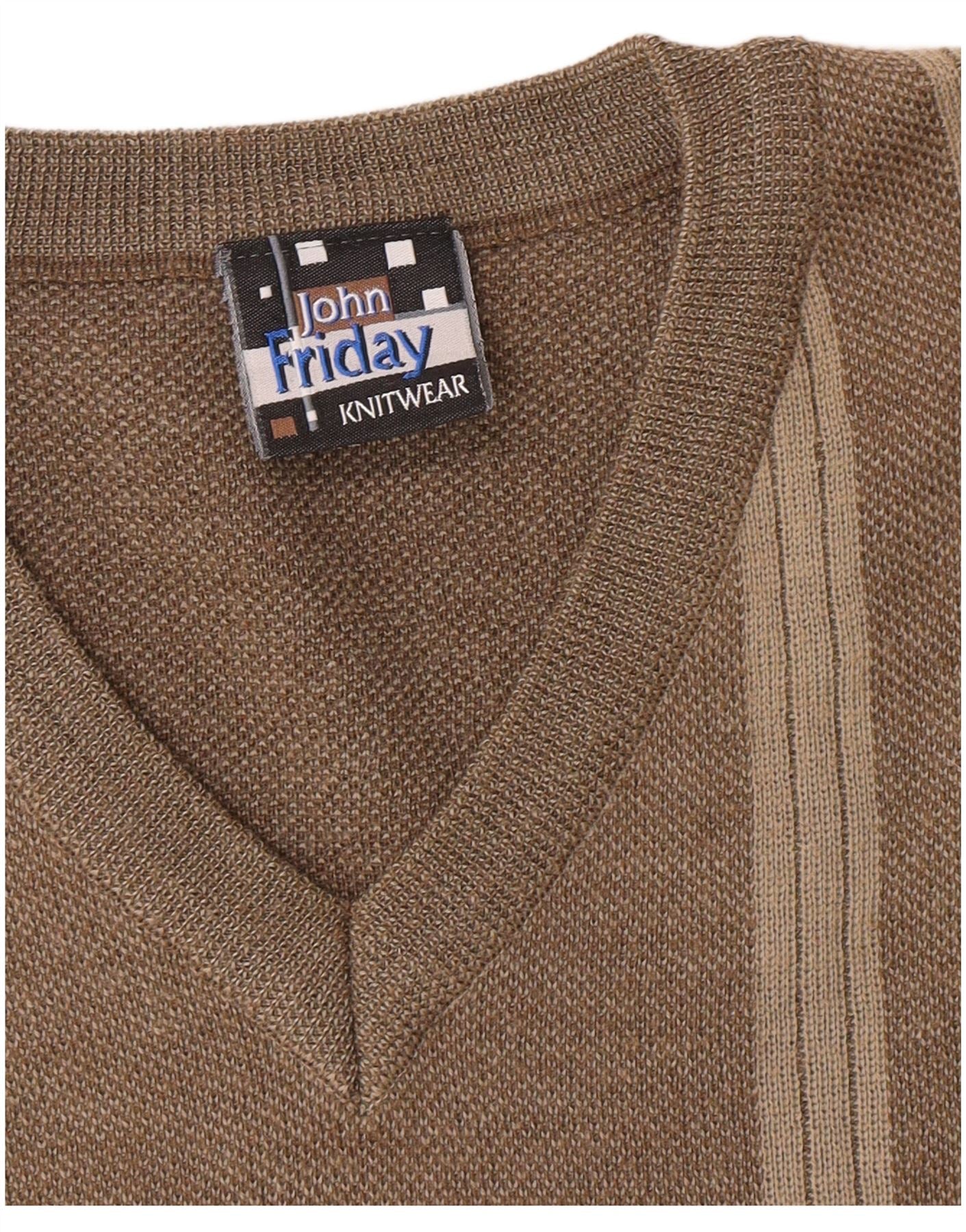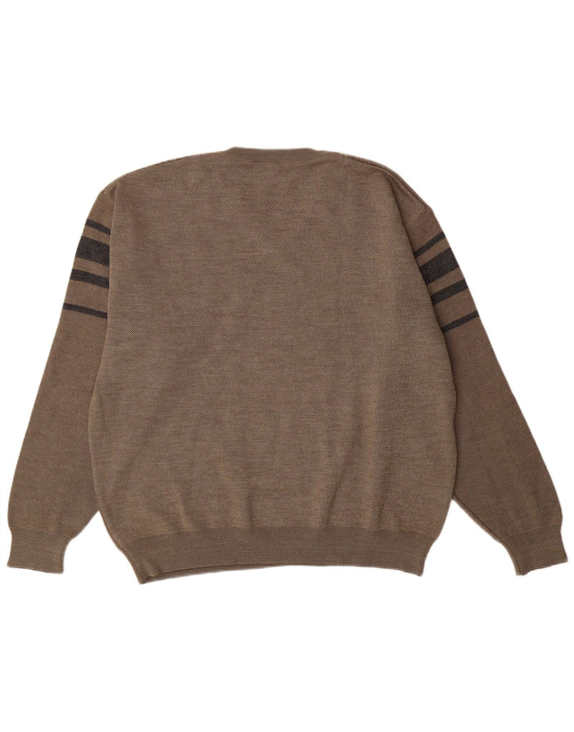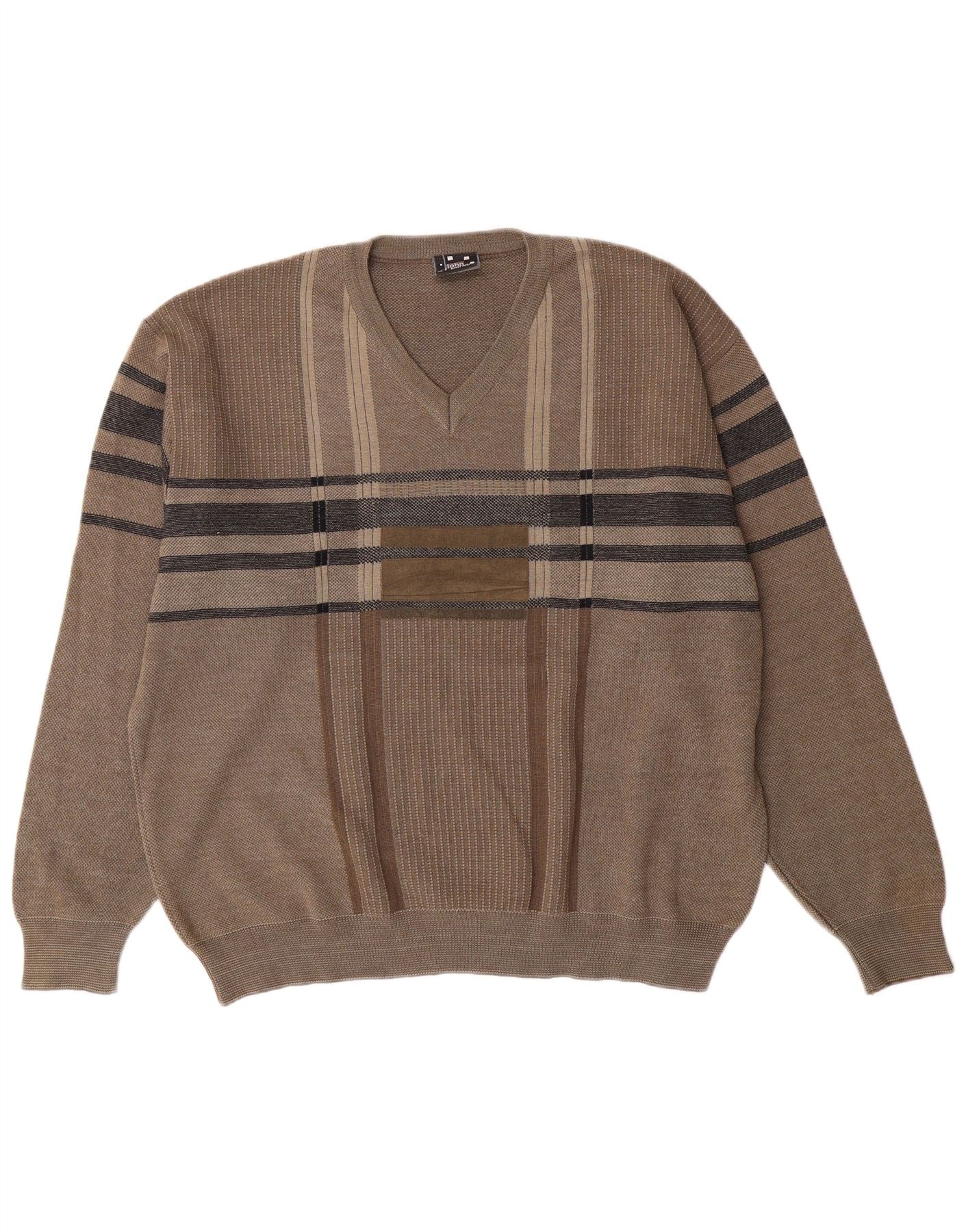 VINTAGE Мужской джемпер с v-образным вырезом XL в коричневую полоску