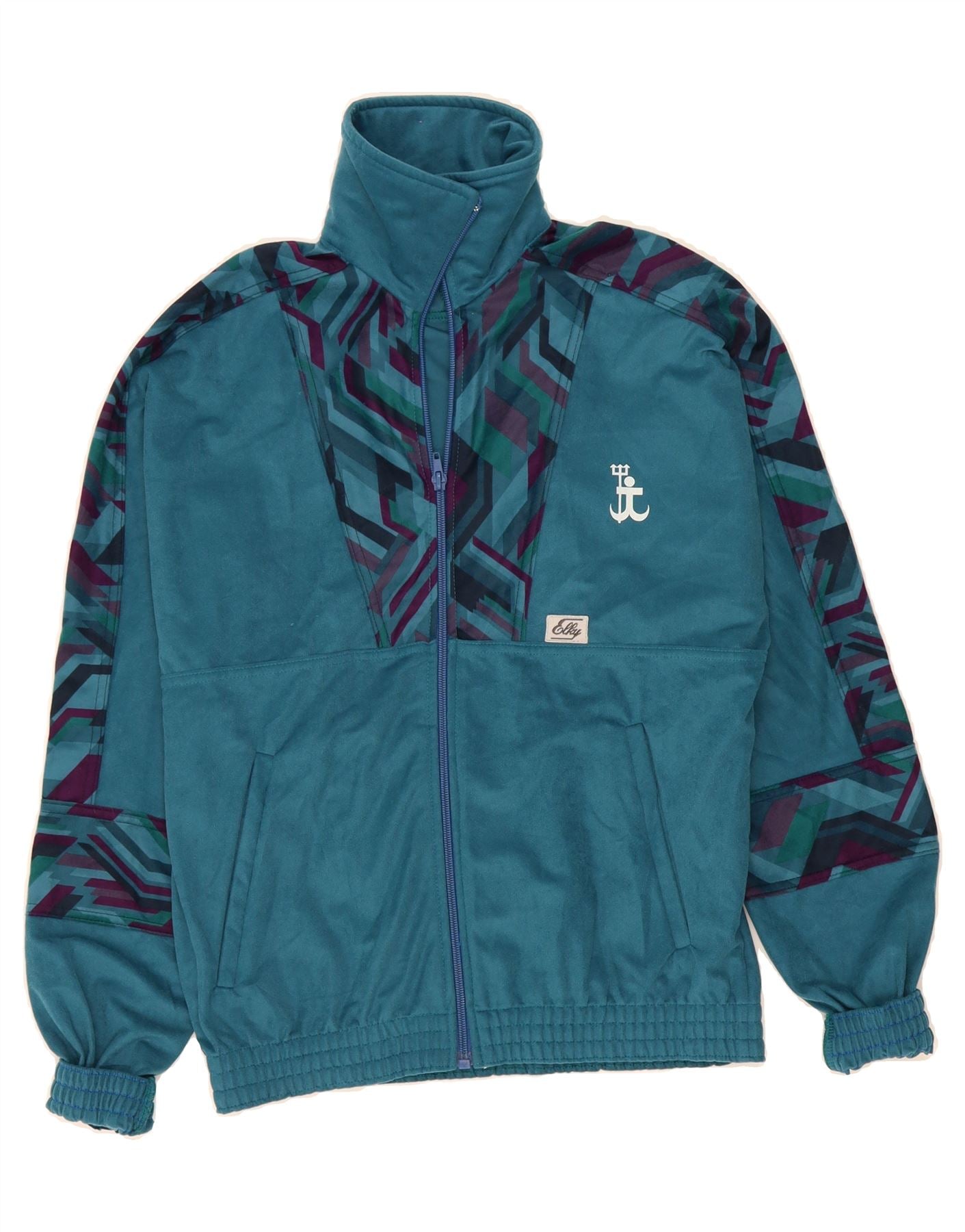 VINTAGE Mens Velvet Full Tracksuit Medium Blue Geometric