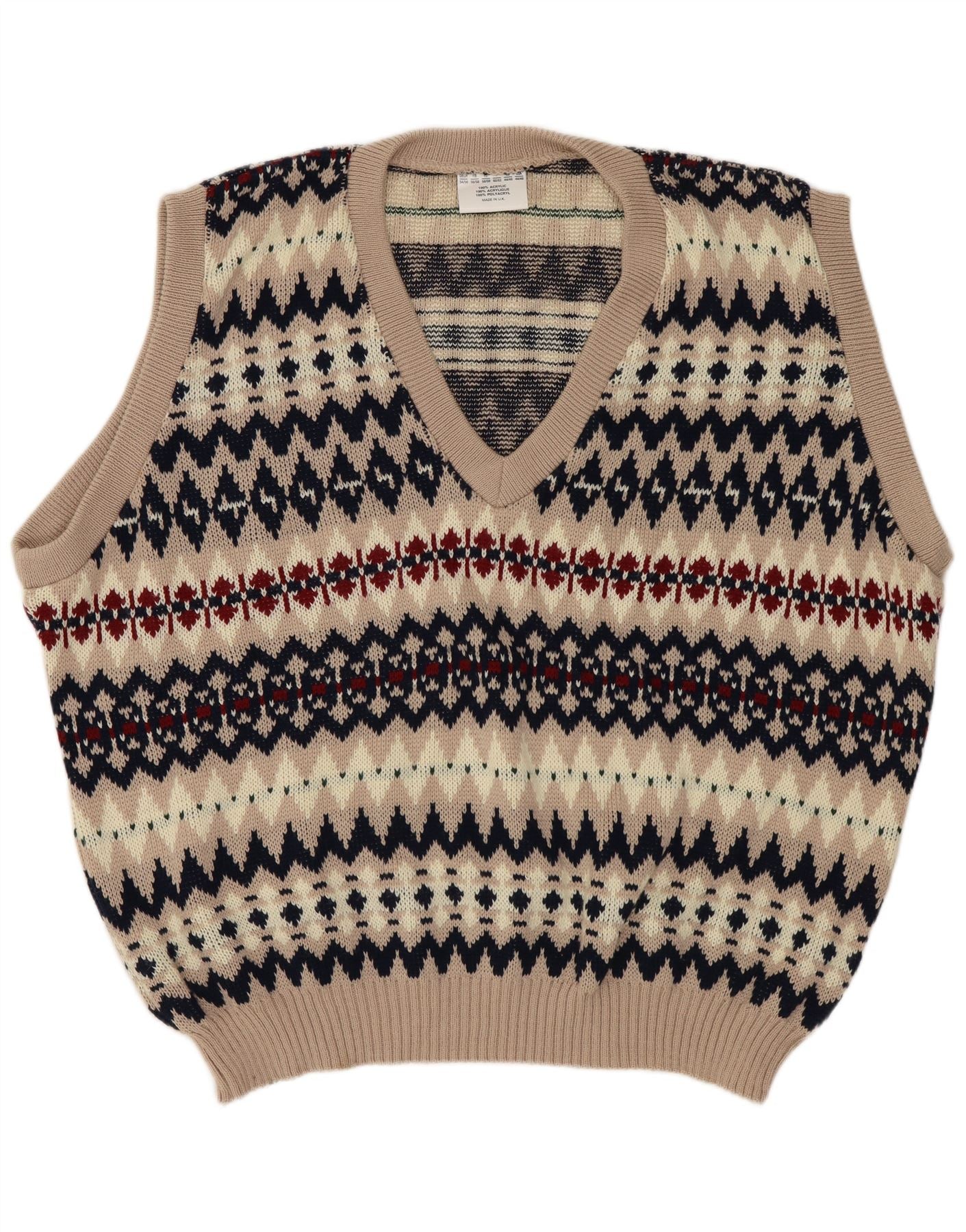 ВИНТАЖНАЯ мужская майка без рукавов, Великобритания, 44/46 XL, темно-синяя, акрил Fair Isle