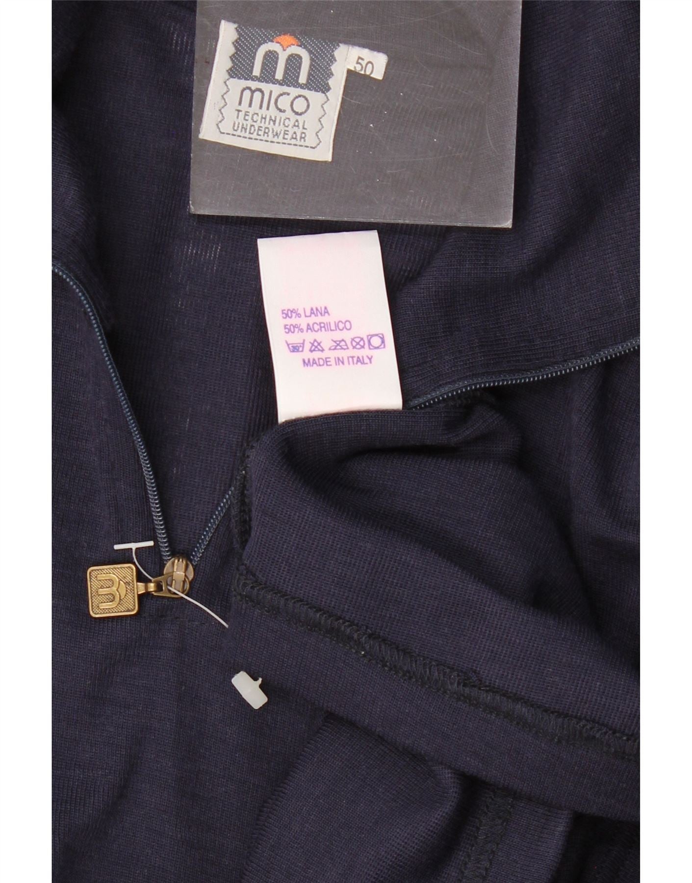 Винтажный мужской свитер с воротником на молнии IT 50, средний темно-синий, шерсть