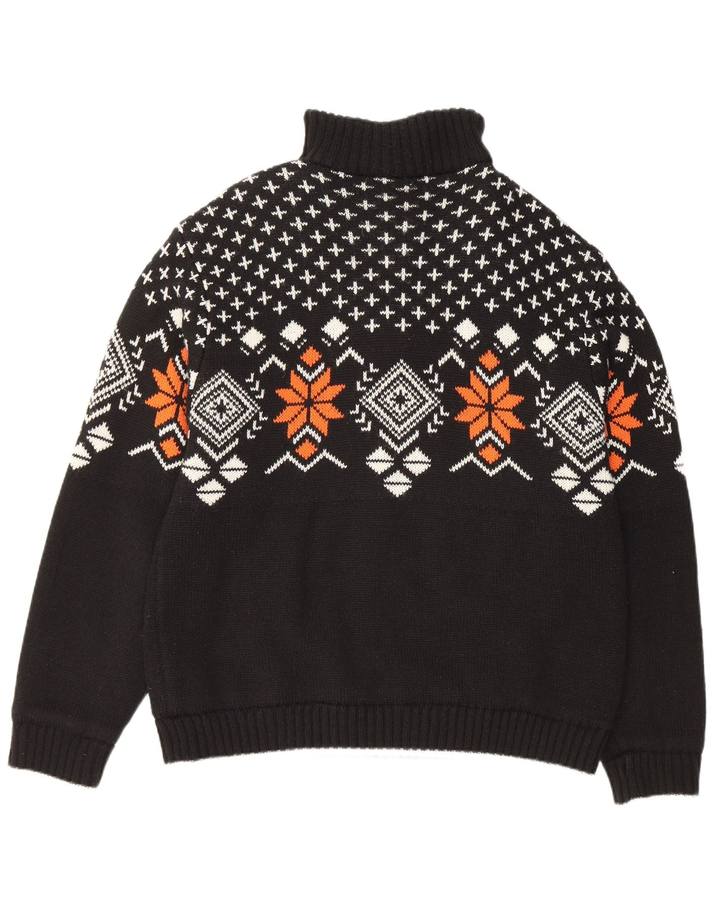 VINTAGE Мужской джемпер с воротником на молнии IT 52/54 Большой черный с жаккардовым узором