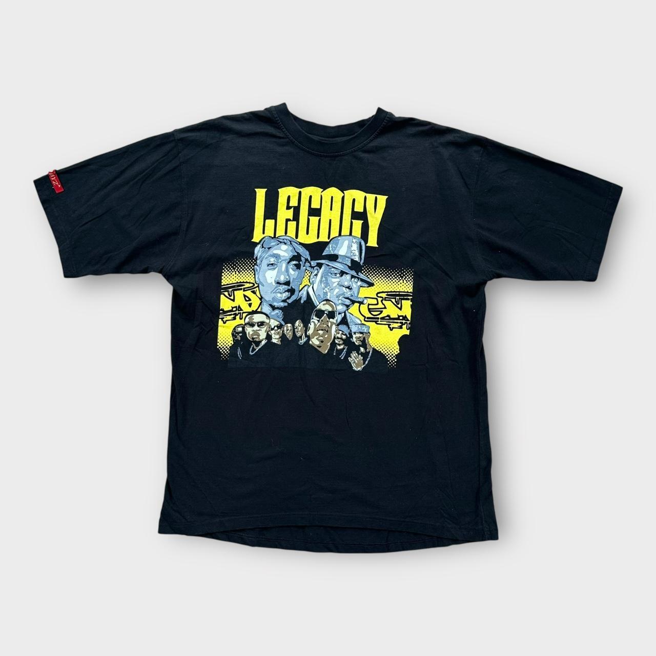 Черная футболка с графическим рисунком и принтом на груди начала 2000-х годов Tupac & Biggie