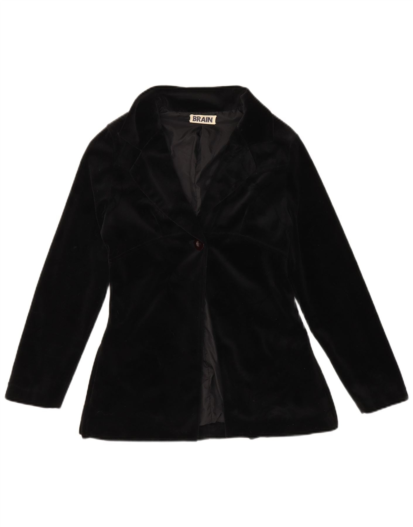 ВИНТАЖНЫЙ женский бархатный пиджак на 1 пуговице, Великобритания 12, средний черный