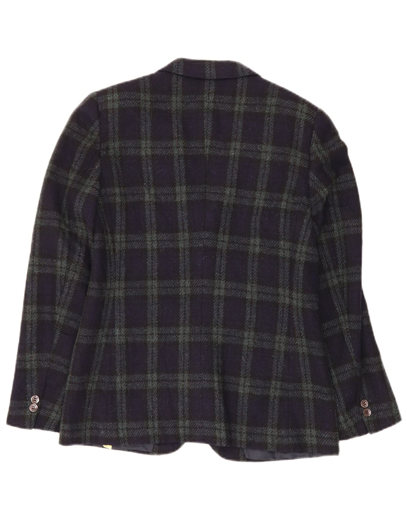ВИНТАЖНЫЙ женский пиджак на 2 пуговицах IT 44, средний темно-синий в клетку, шерсть