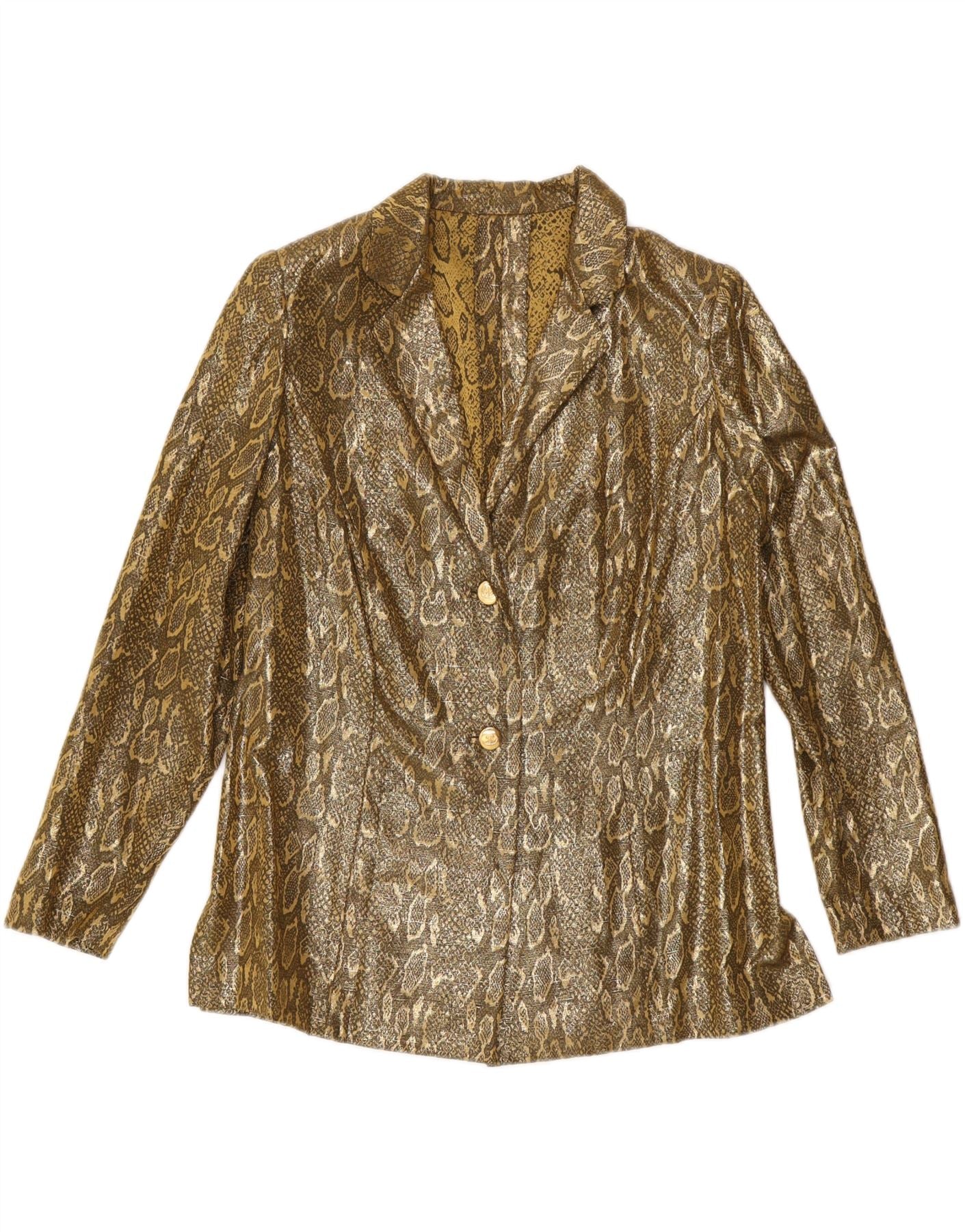 ВИНТАЖНЫЙ женский пиджак на 2 пуговицах, Великобритания 14, средний золотой с животным принтом