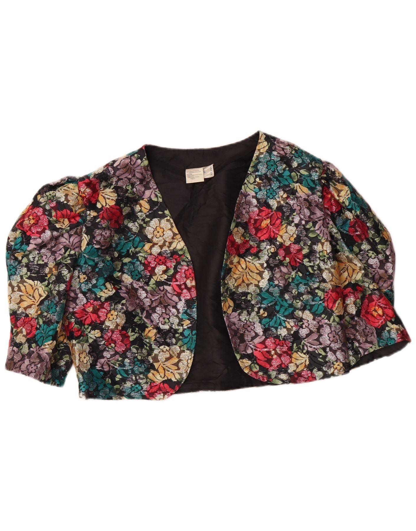 ВИНТАЖНОЕ женское болеро с рукавом 3/4, Великобритания 14, средний разноцветный цветочный принт