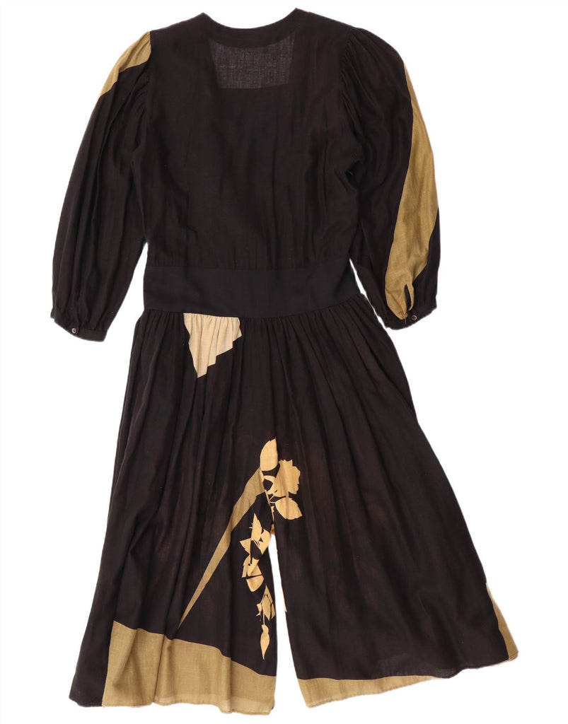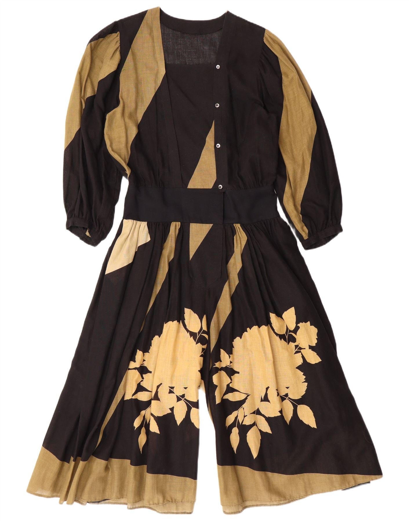 VINTAGE Womens 3/4 Sleeve Jumpsuit UK 14 Medium Black Floral