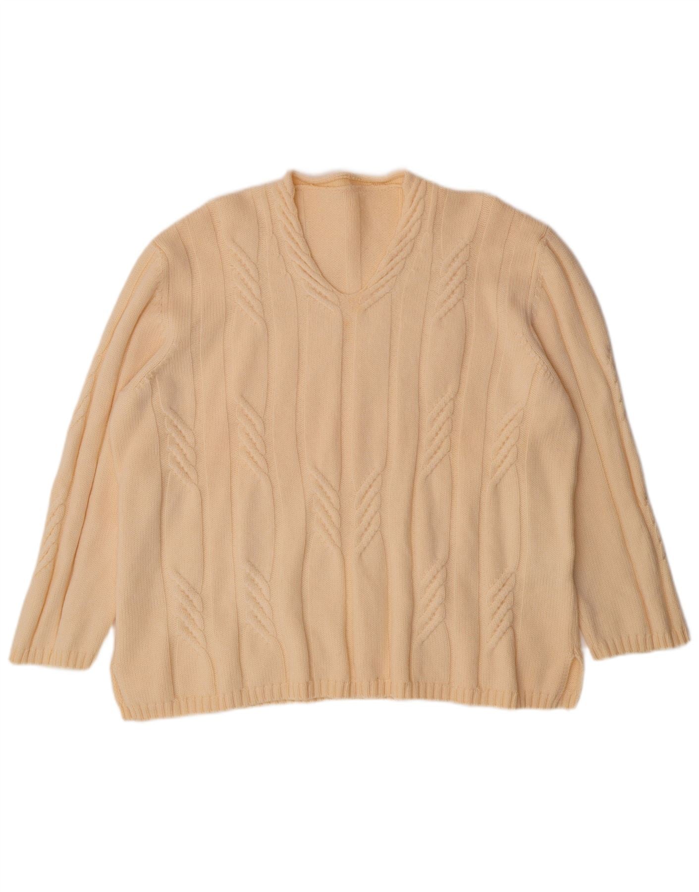 ВИНТАЖНЫЙ женский джемпер с рукавом 3/4 и v-образным вырезом, Великобритания, 18 XL, белый цвет