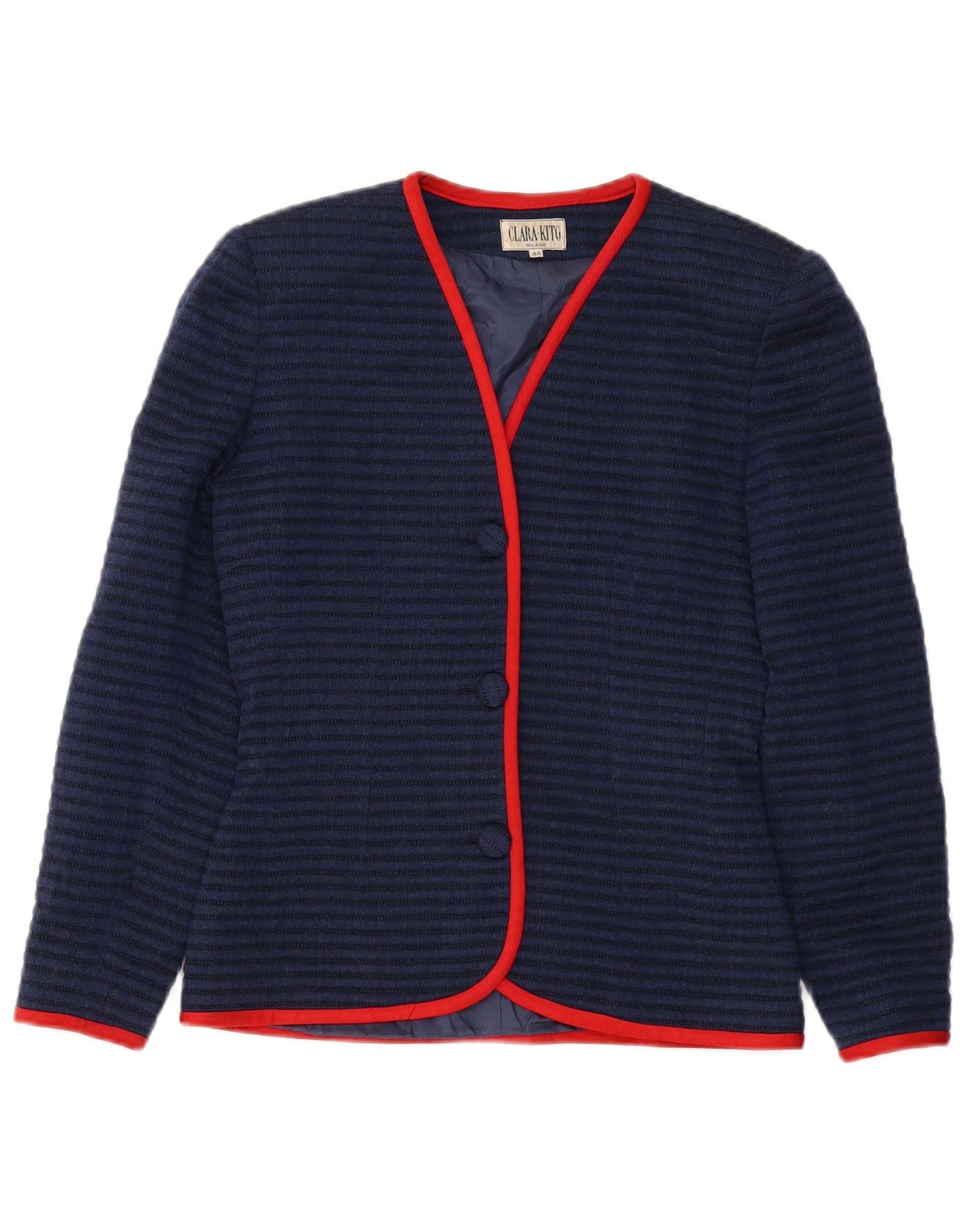 ВИНТАЖНЫЙ женский пиджак на 3 пуговицах IT 44, средний темно-синий в полоску