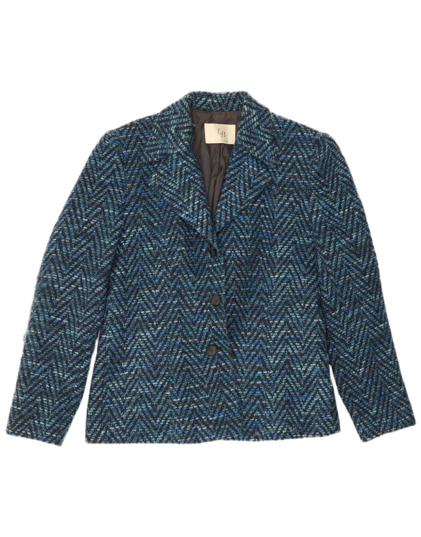 ВИНТАЖНЫЙ женский пиджак на 3 пуговицах, Великобритания 14, средний синий шерстяной узор с шевроном