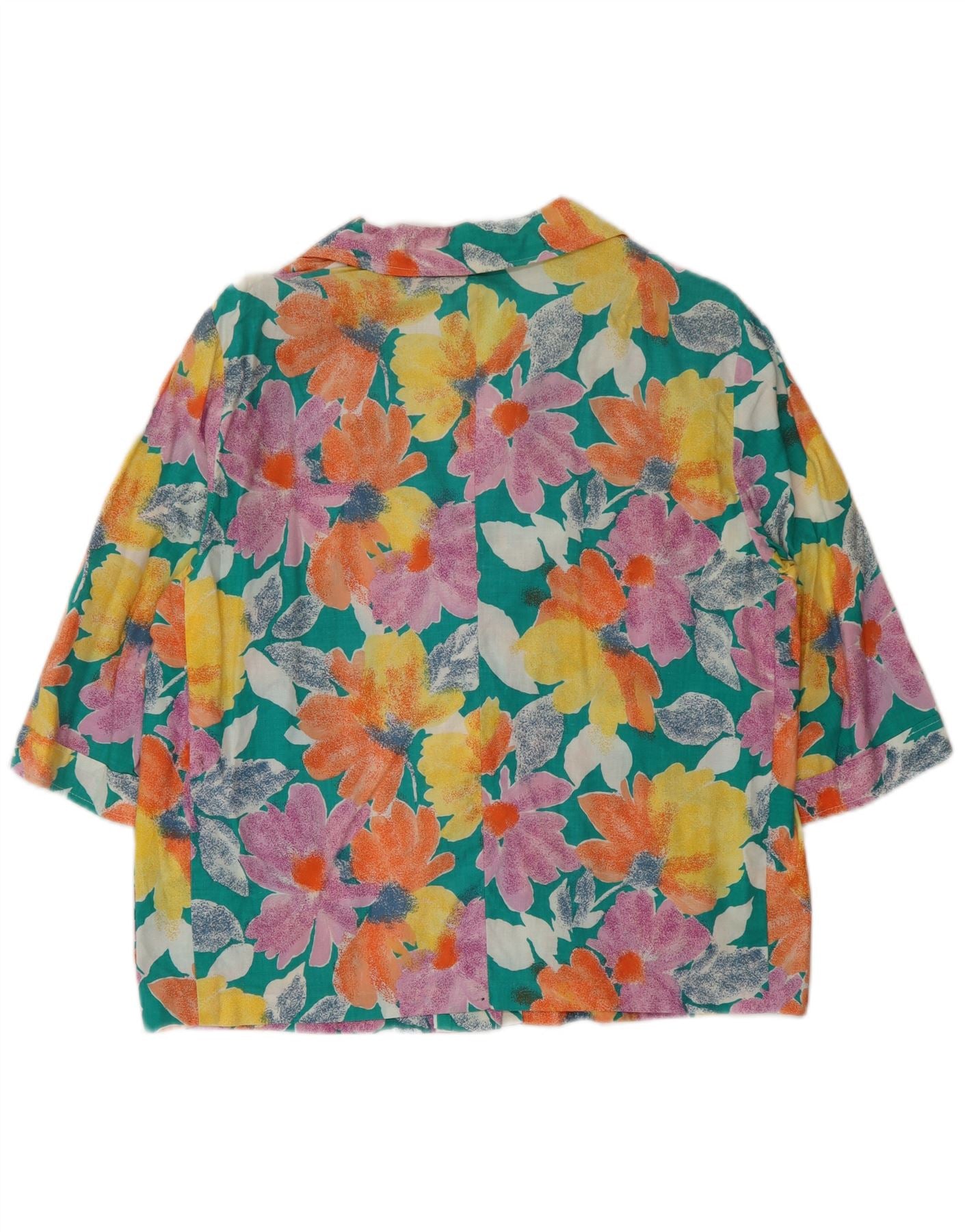Винтажный женский пиджак на 3 пуговицах, Великобритания, 16, большой разноцветный цветочный принт