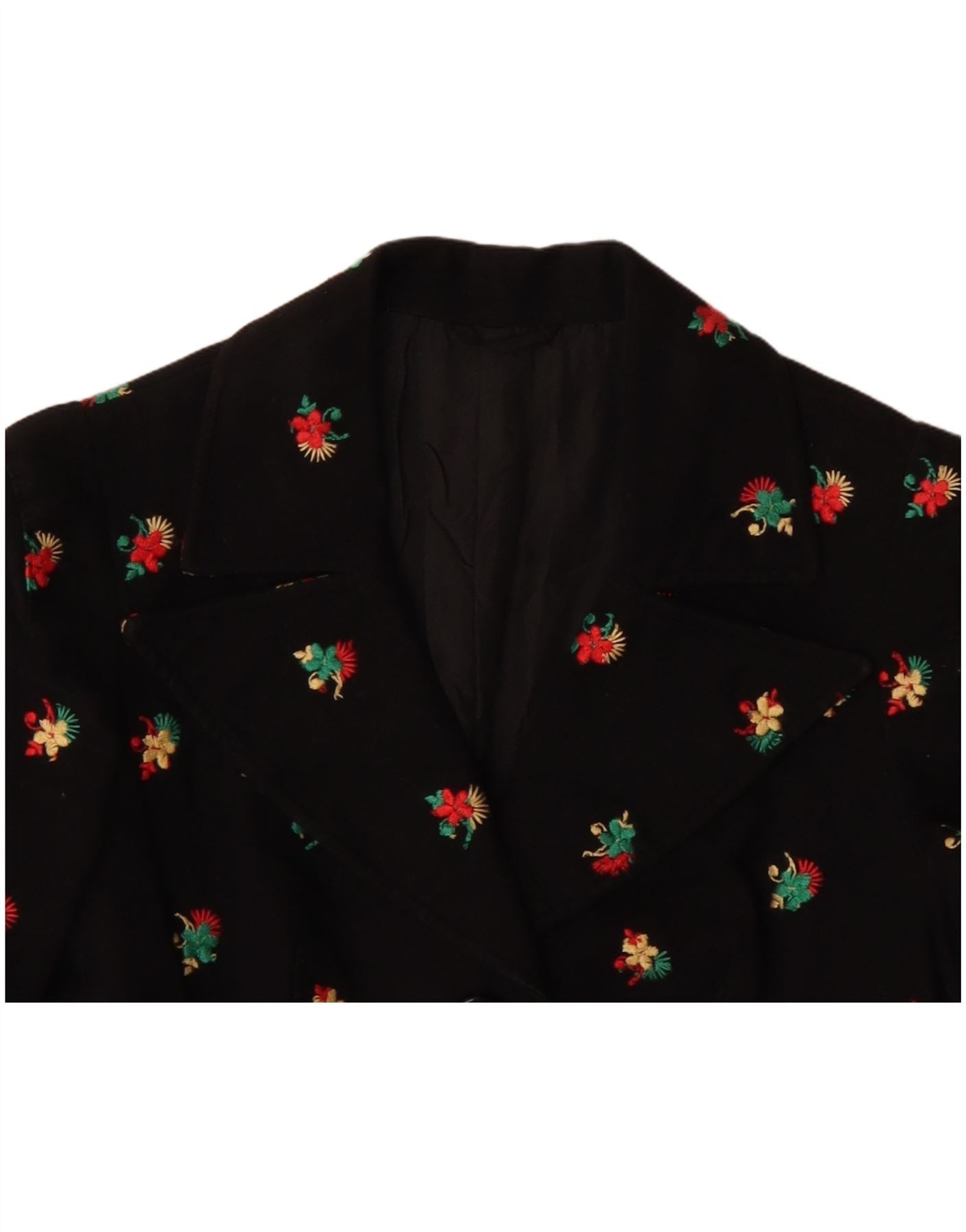ВИНТАЖНЫЙ женский пиджак на 4 пуговицах, Великобритания, 10 маленьких размеров, черный с цветочным принтом
