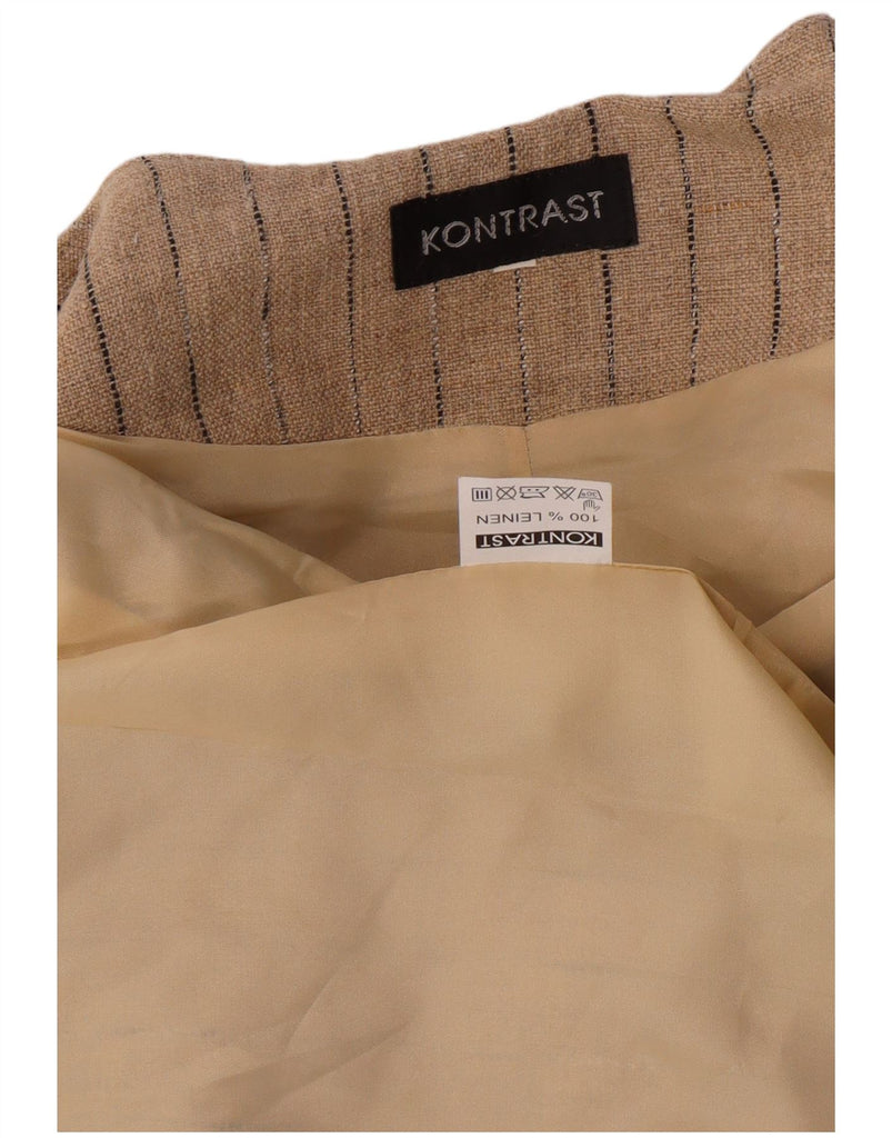 ВИНТАЖНЫЙ женский пиджак на 4 пуговицах, Великобритания 14, льняной средний цвет в бежевую полоску