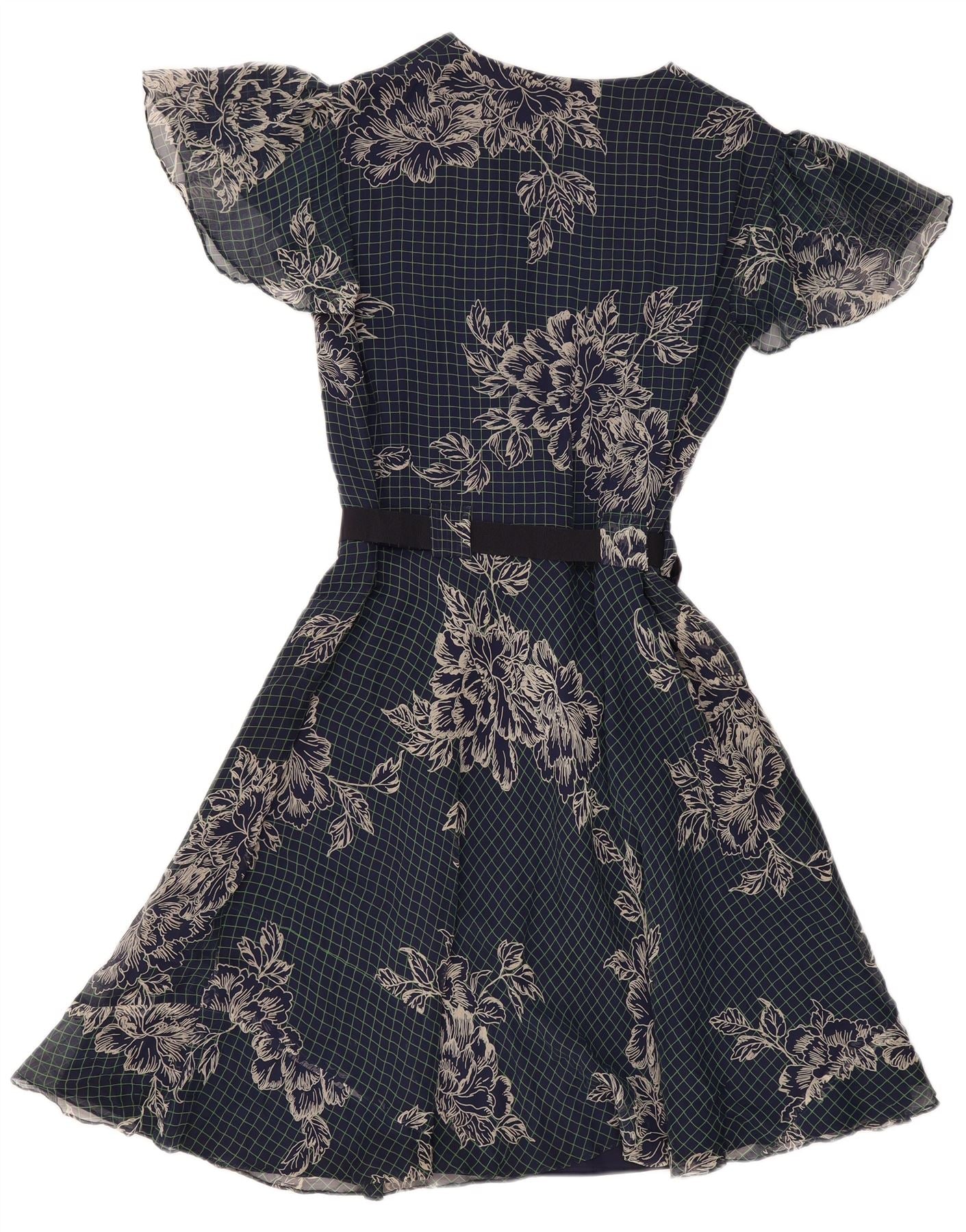 ВИНТАЖНОЕ женское платье А-силуэта UK 12, средний темно-синий с цветочным принтом