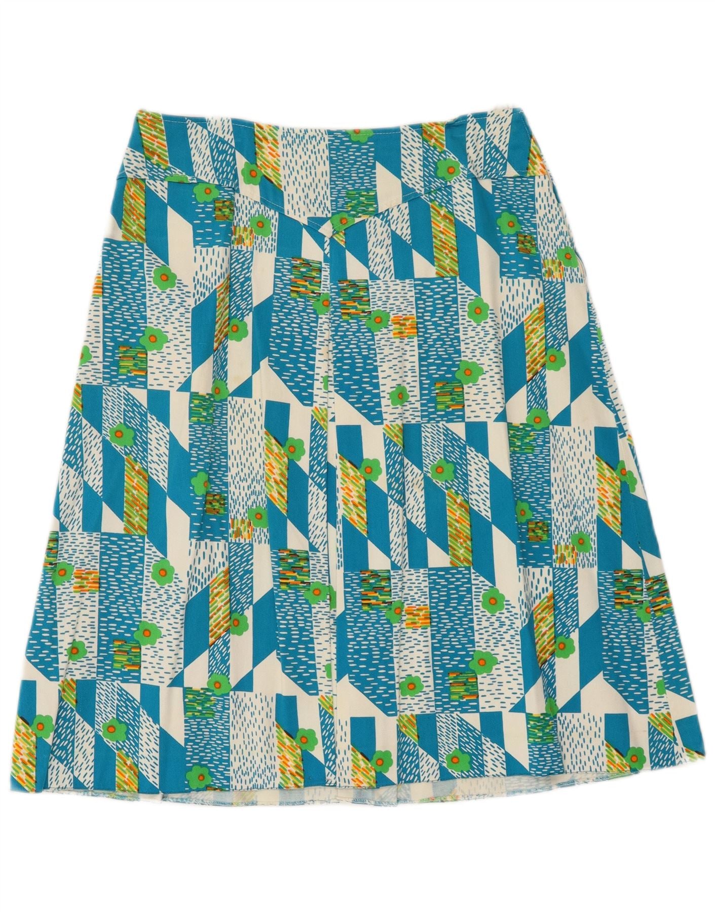 ВИНТАЖНАЯ женская юбка-трапеция IT 48 XL W38 Синяя с геометрическим рисунком