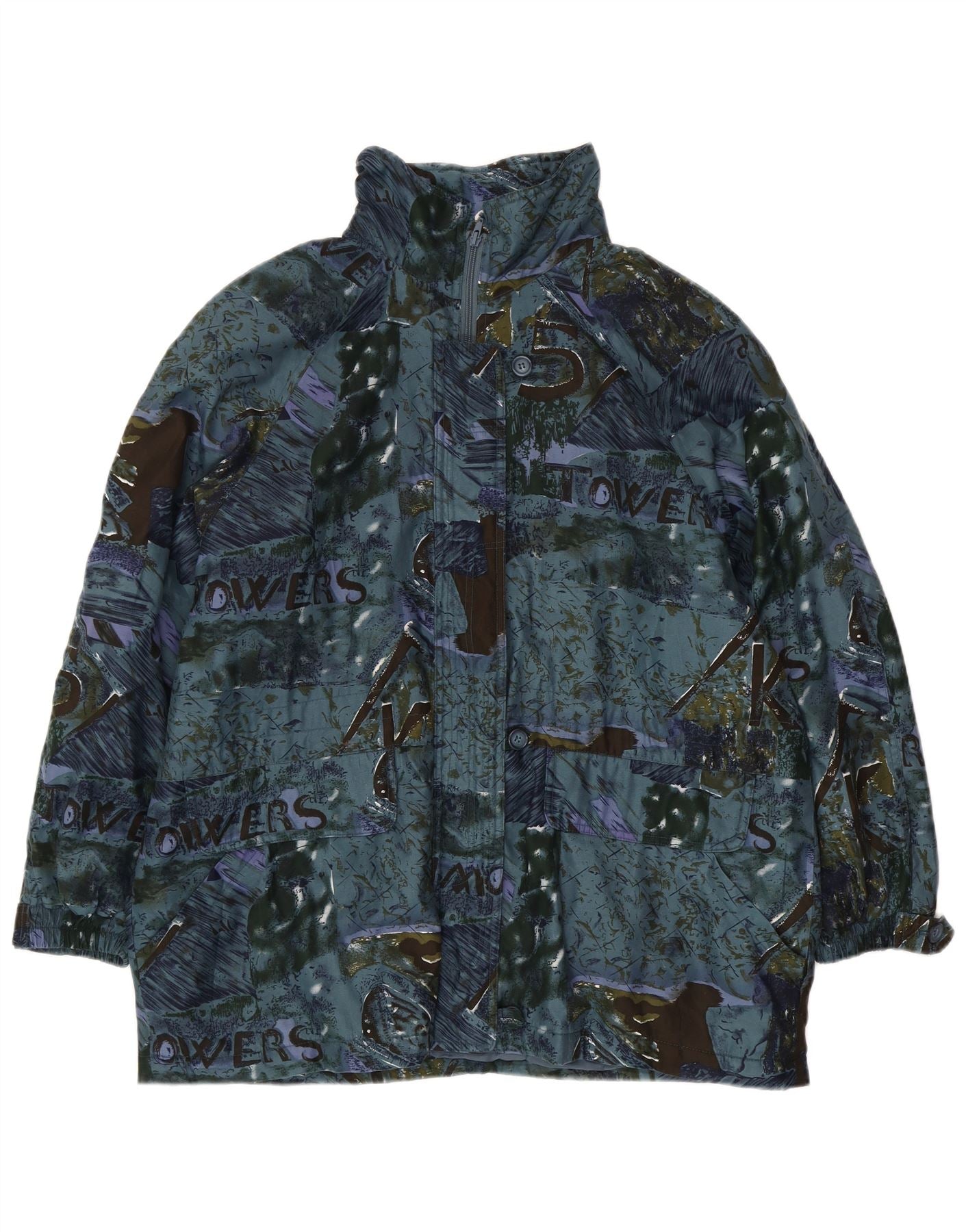 ВИНТАЖНОЕ женское пальто-ветровка большого размера с абстрактным узором EU 44 XL, синее