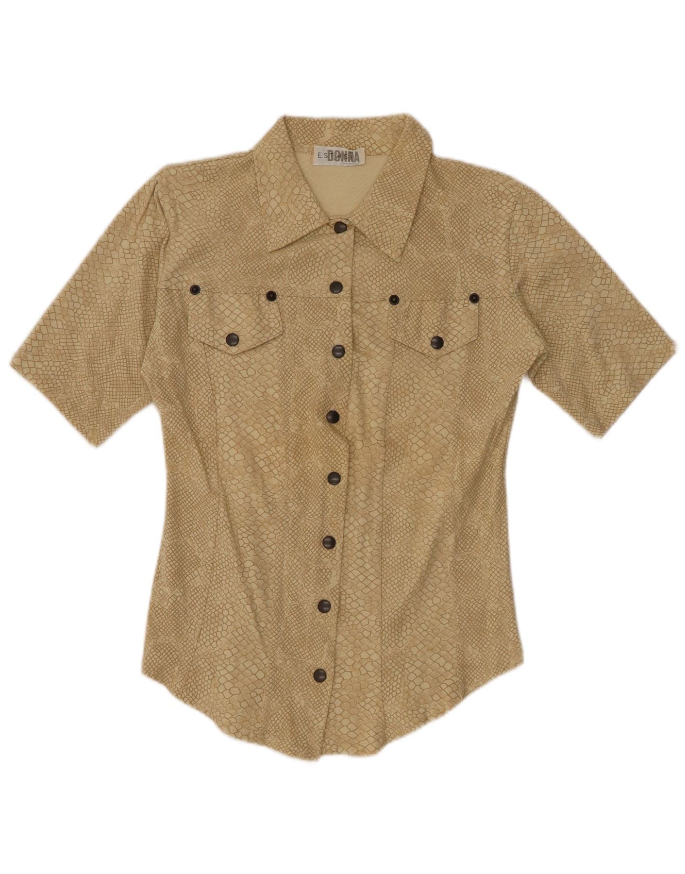 VINTAGE Женская рубашка с абстрактным узором UK 12, средний бежевый с животным принтом