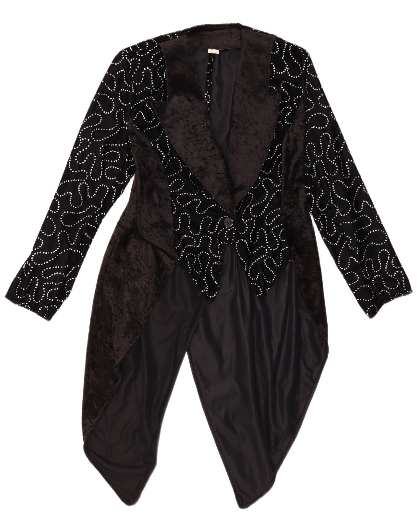 ВИНТАЖНЫЙ женский фрак-пиджак с абстрактным узором IT 42 Средний черный