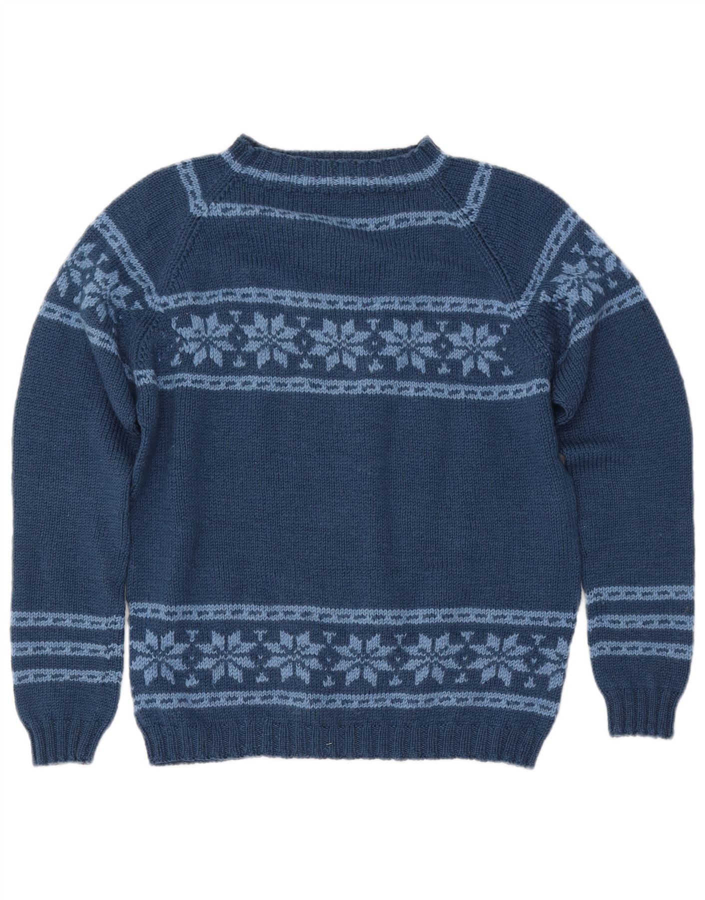 ВИНТАЖНЫЙ женский джемпер с вырезом «лодочка», Великобритания 12, средний темно-синий Fair Isle