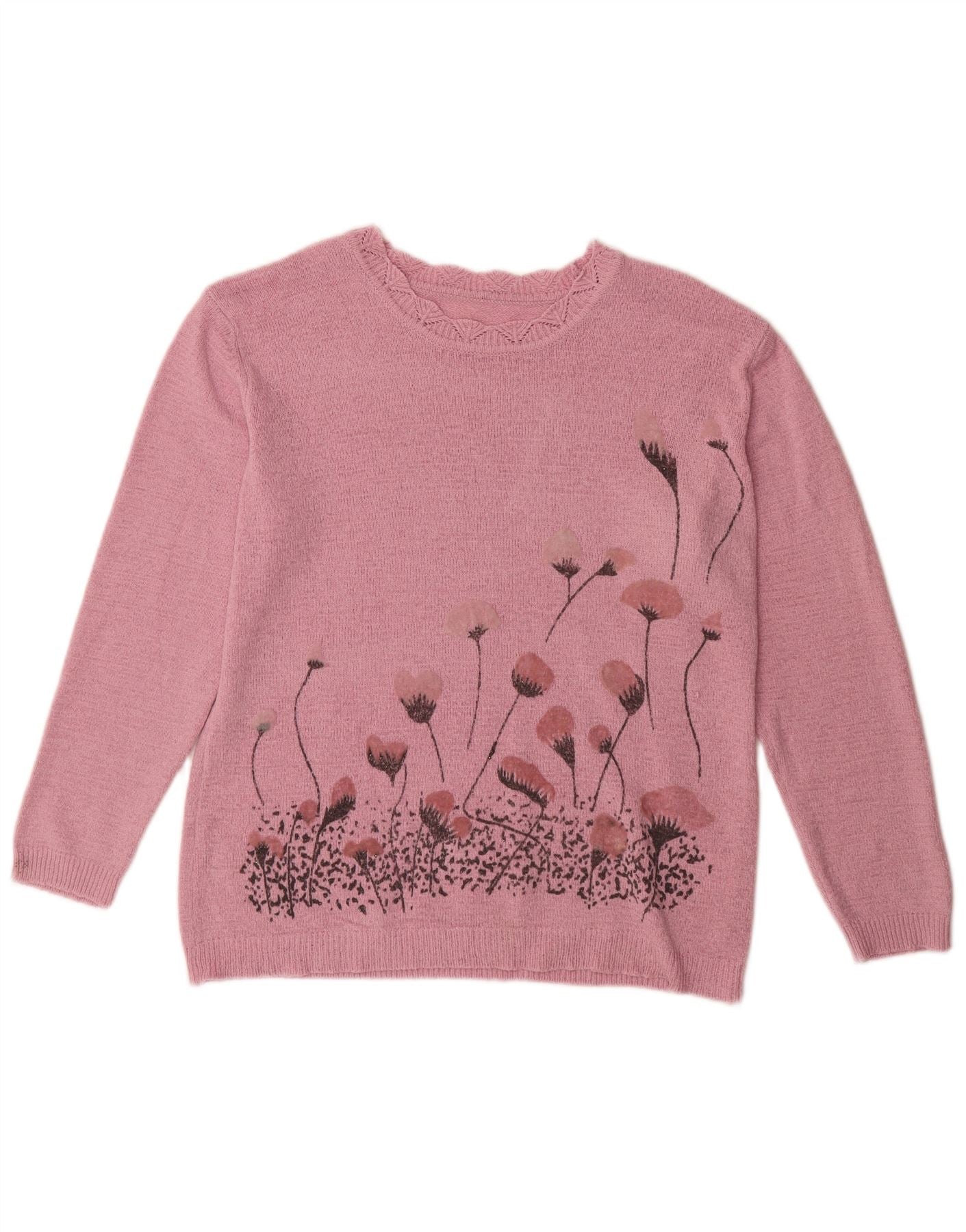 ВИНТАЖНЫЙ женский джемпер с вырезом «лодочка», Великобритания, 14 размеров, большой розовый хлопок с цветочным принтом