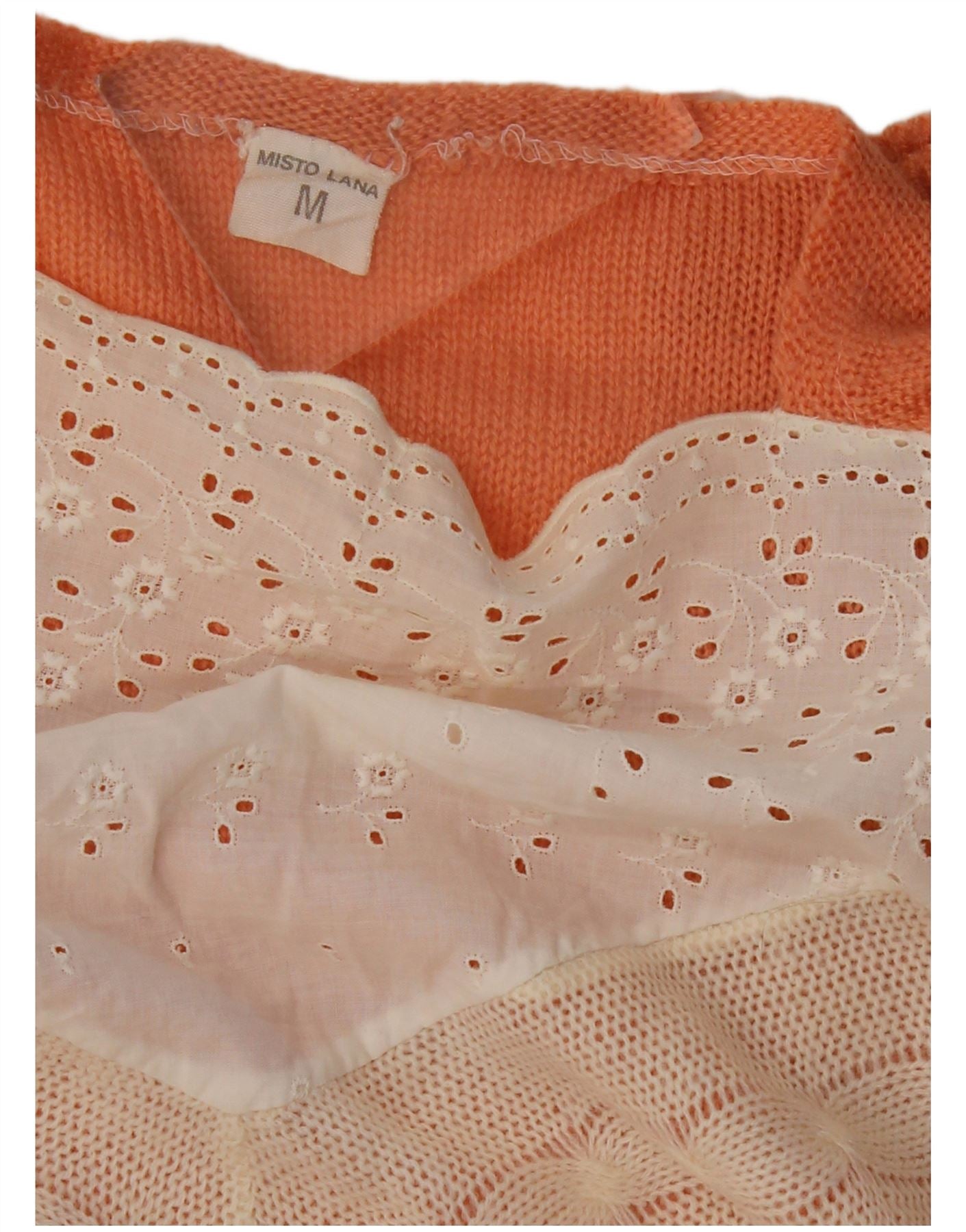 ВИНТАЖНЫЙ женский джемпер с вырезом «лодочкой», Великобритания 14, средний оранжевый цвет с цветными блоками