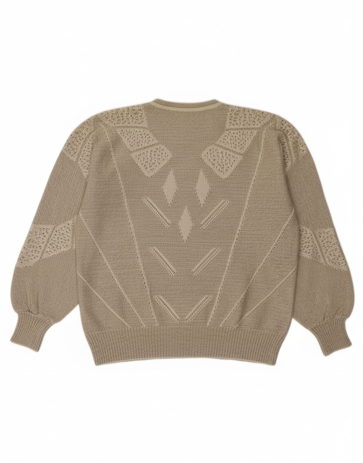 Винтажный женский джемпер на пуговицах, Великобритания, 14, большой серый с геометрическим узором