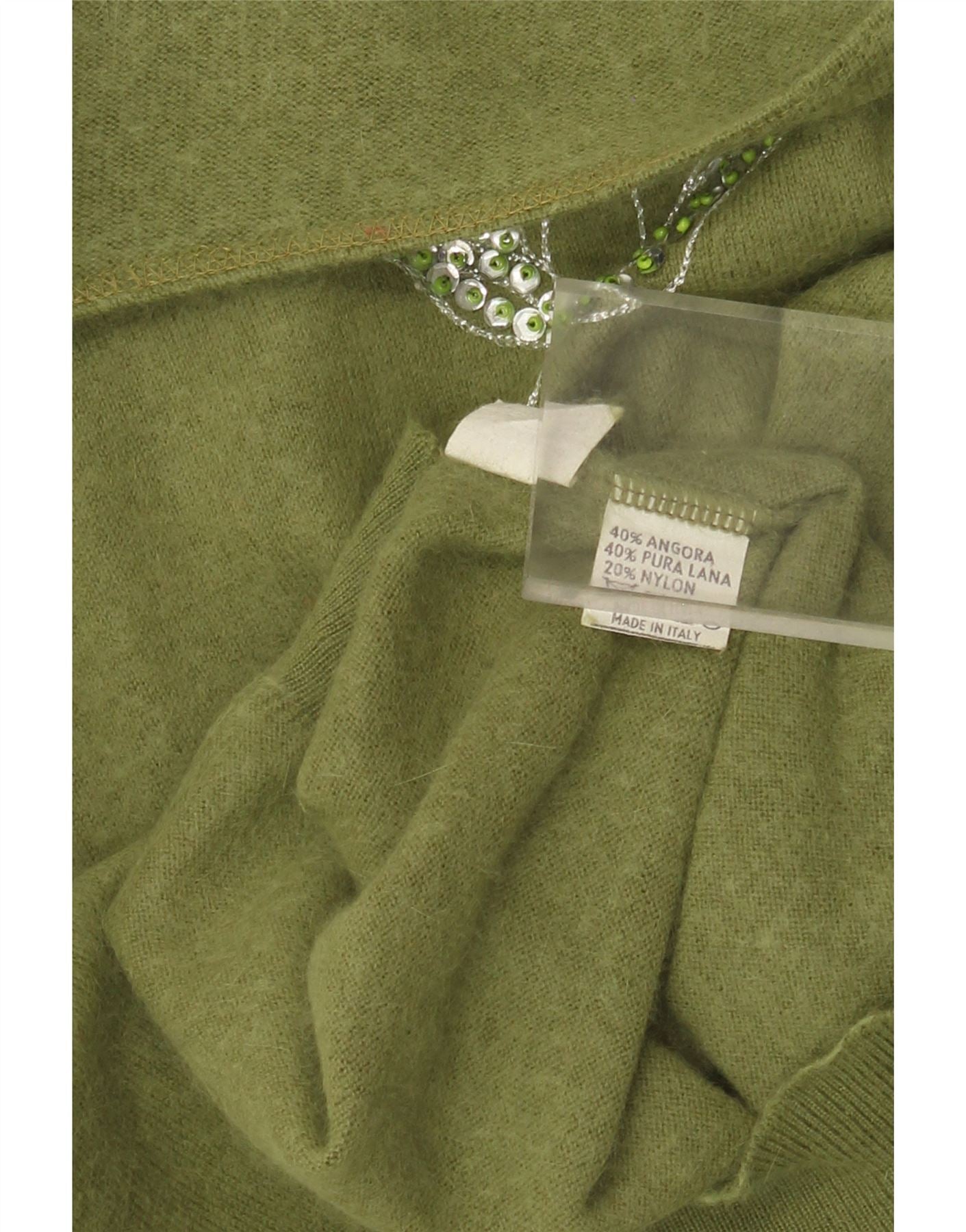 ВИНТАЖНЫЙ женский кардиган-свитер UK 12, средний зеленый цвет из ангоры с цветочным принтом