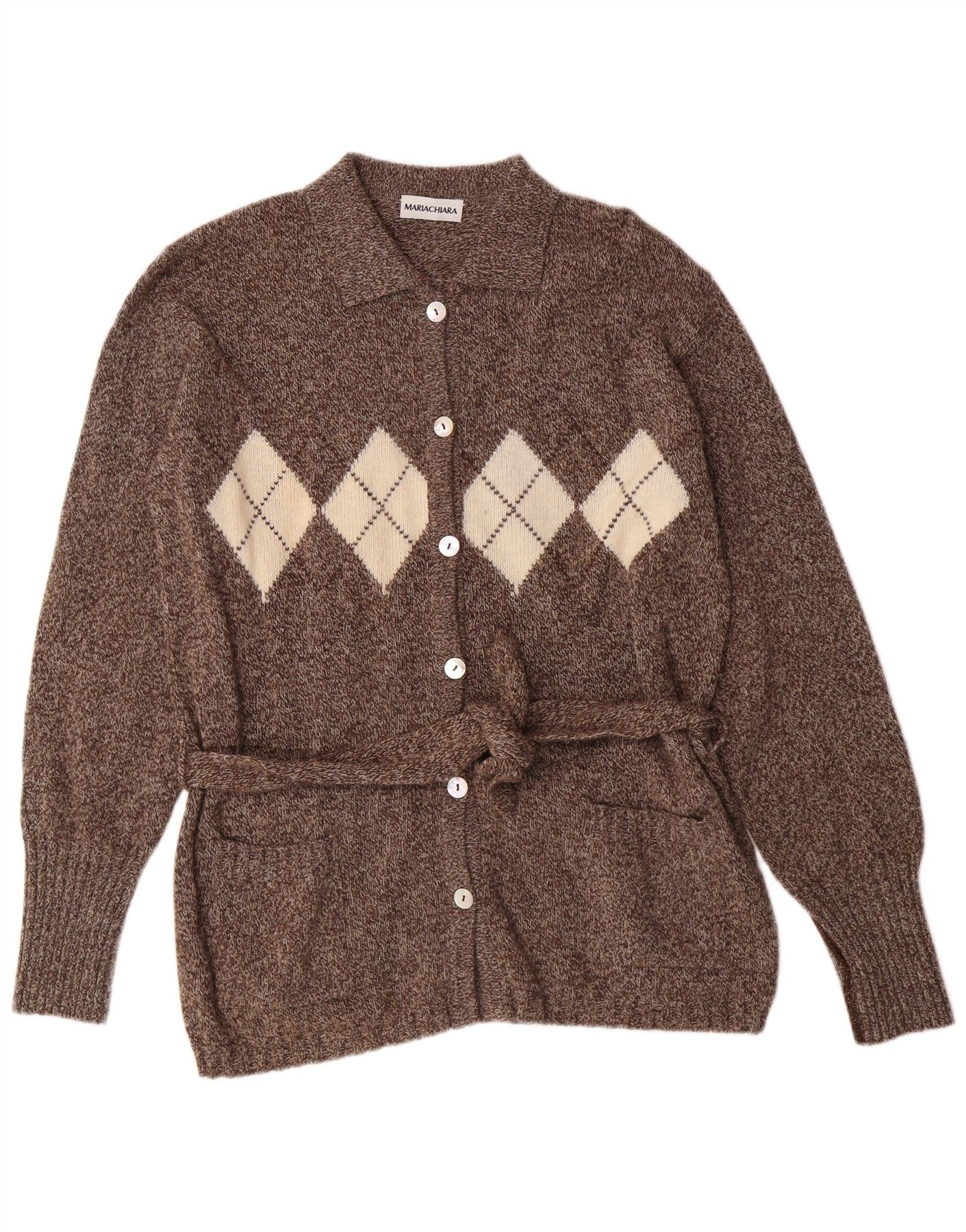 ВИНТАЖНЫЙ женский кардиган-свитер UK 14, средний коричневый цвет Argyle/Diamond