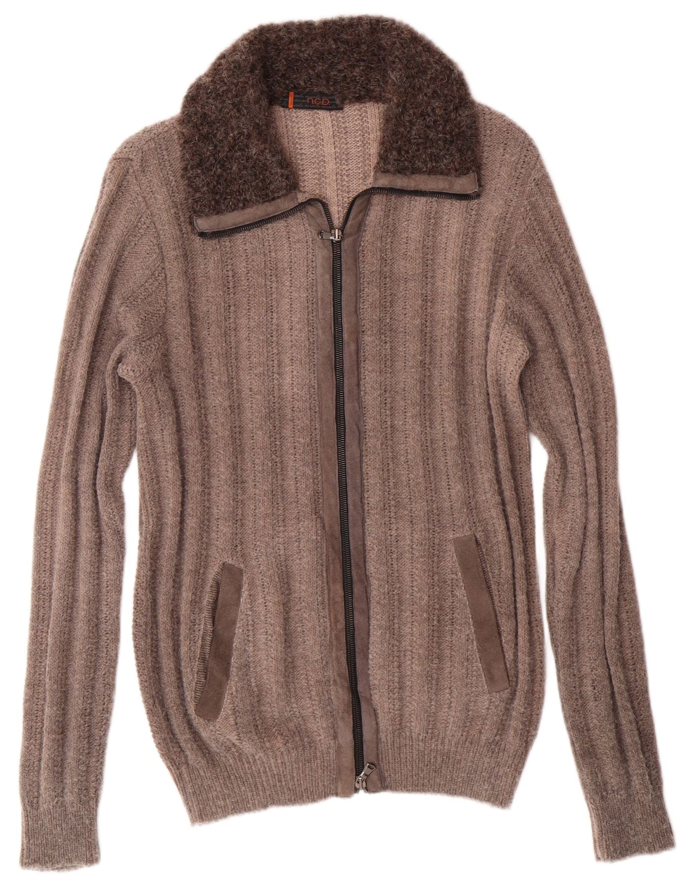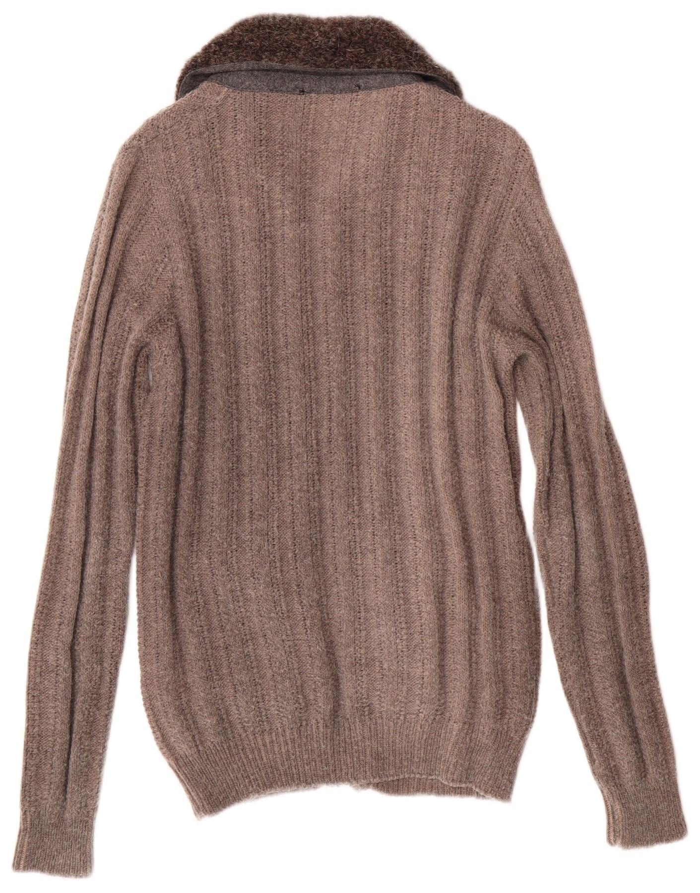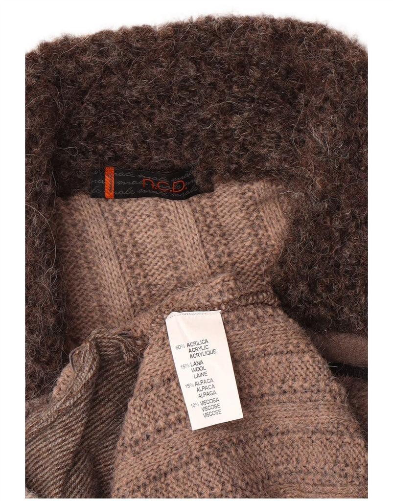 ВИНТАЖНЫЙ женский кардиган-свитер UK 14, средний коричневый в полоску, акрил