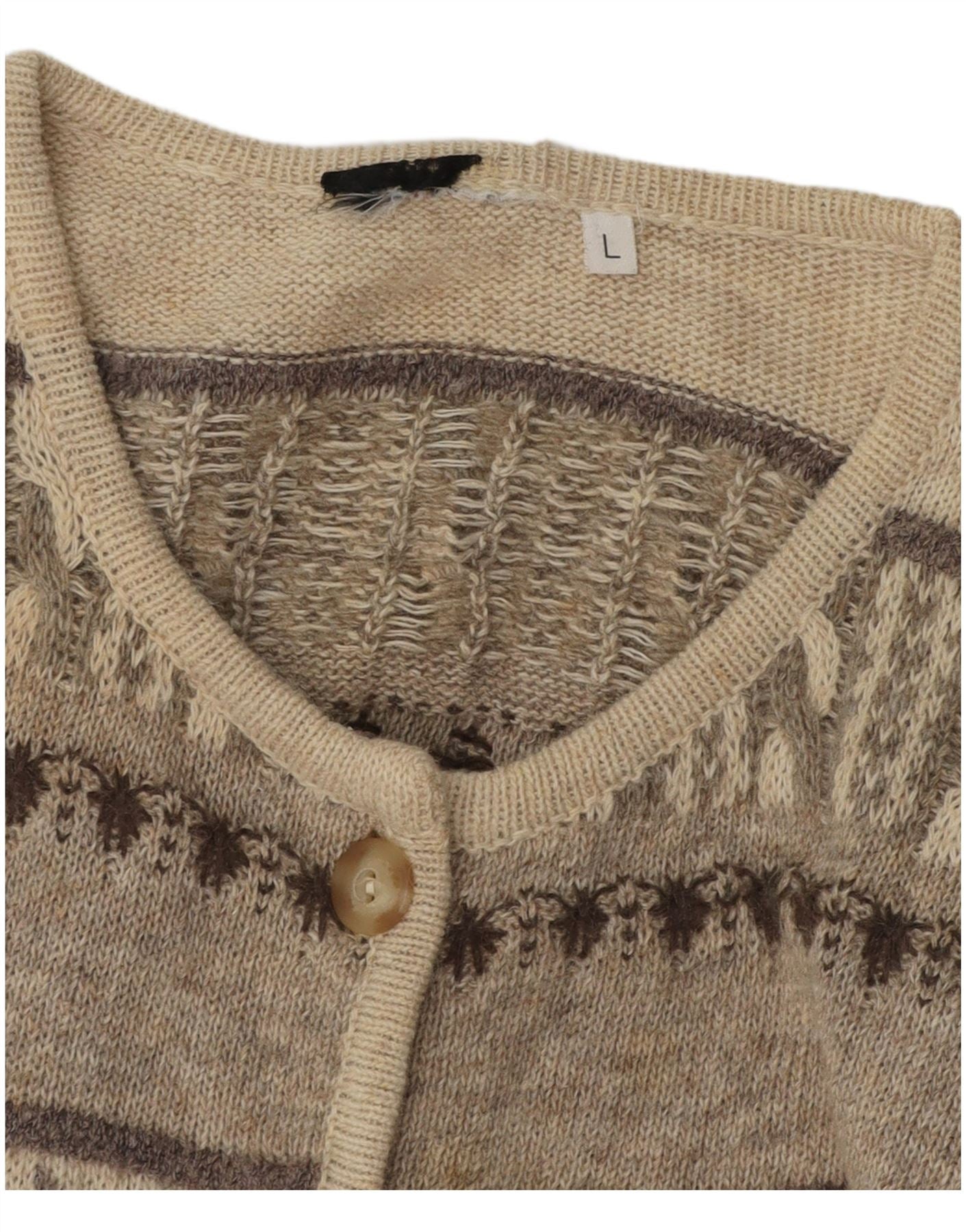 Винтажный женский кардиган-свитер UK 16, большой бежевый Fair Isle