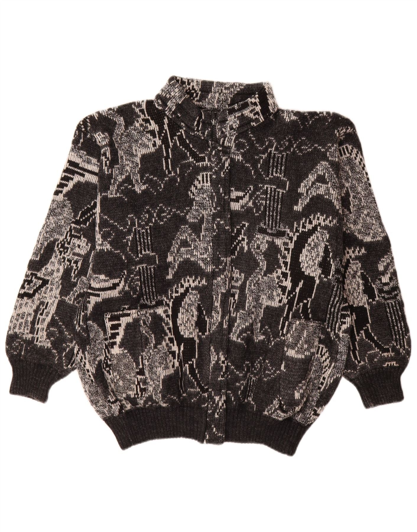 Home > Женский > Депоп Одежда > Винтажный женский кардиган-свитер UK 18 XL, черный шерстяной геометрический узор