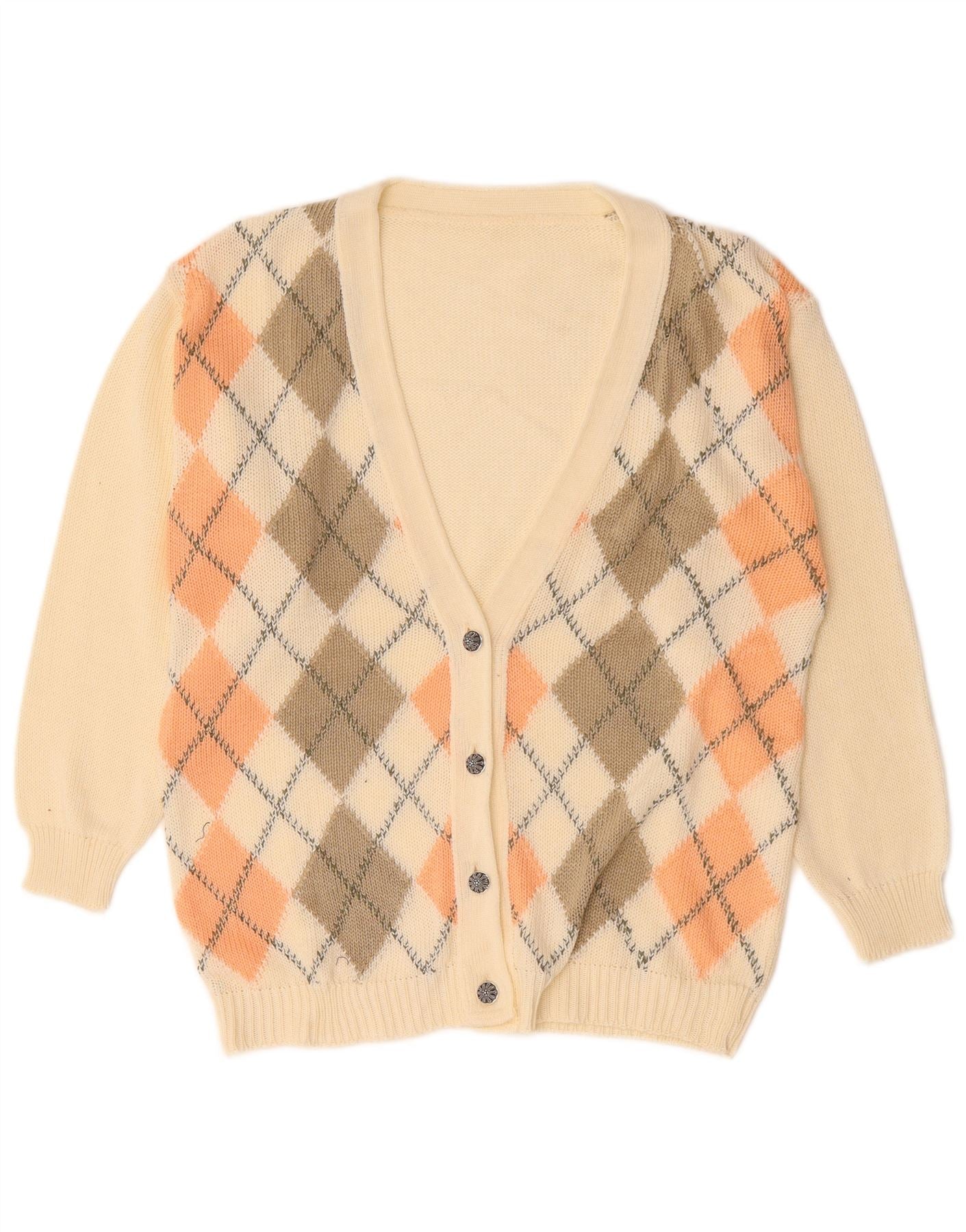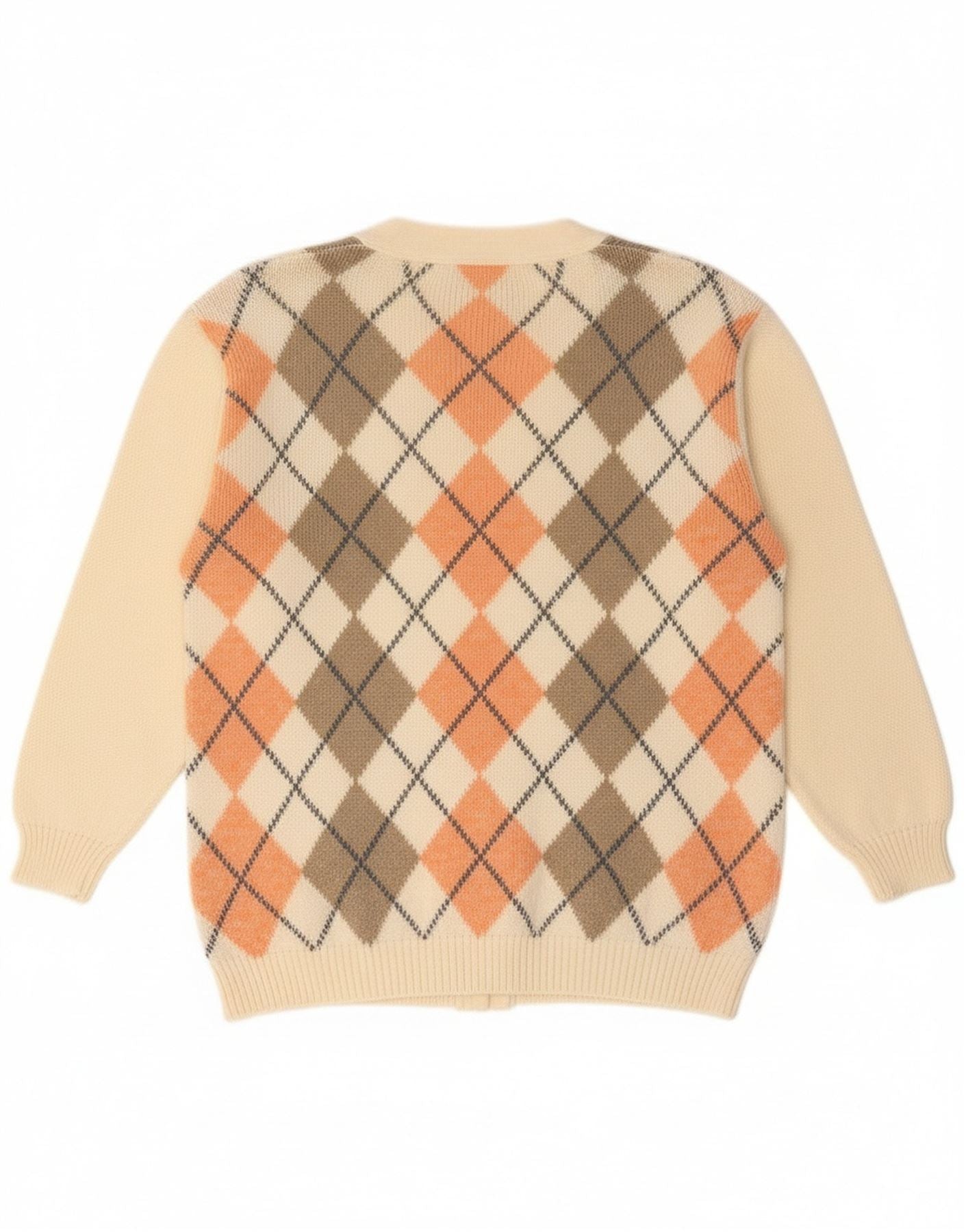 Винтажный женский свитер-кардиган UK 18 XL Off White Argyle/Diamond