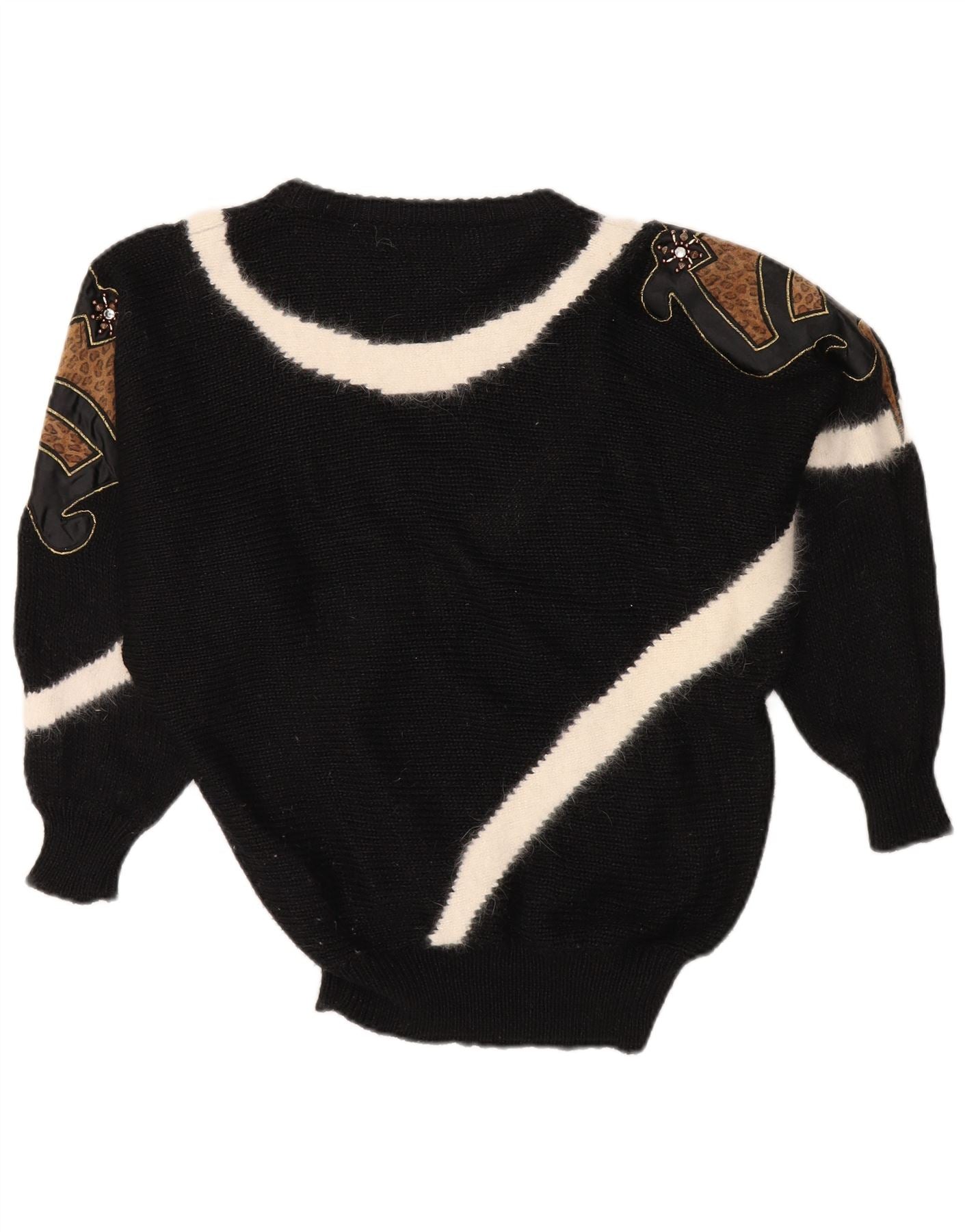 ВИНТАЖНЫЙ женский джемпер с круглым вырезом EU 38, средний черный цвет с цветными блоками