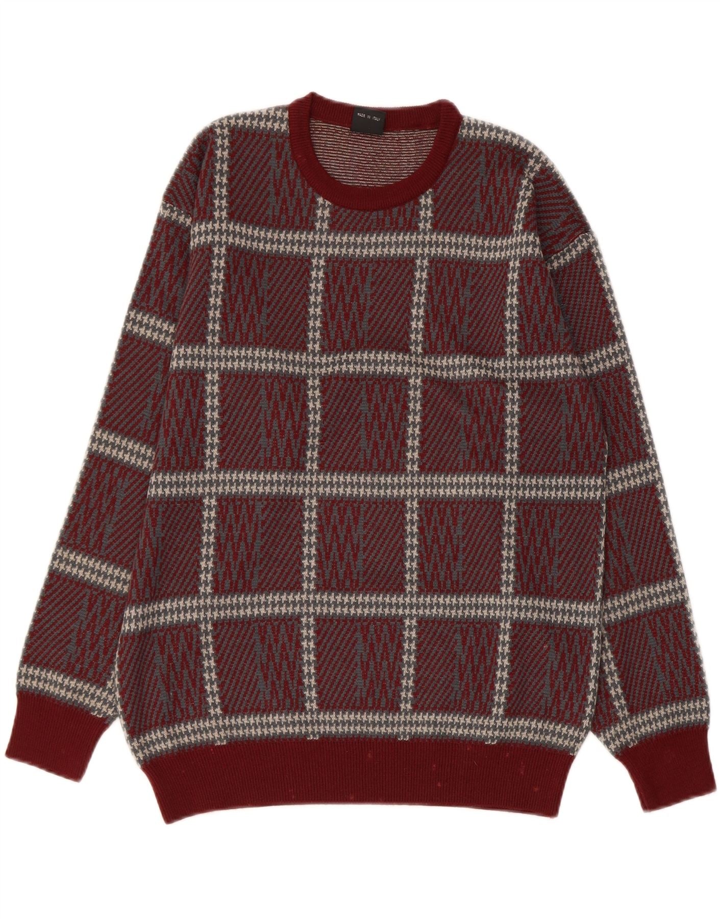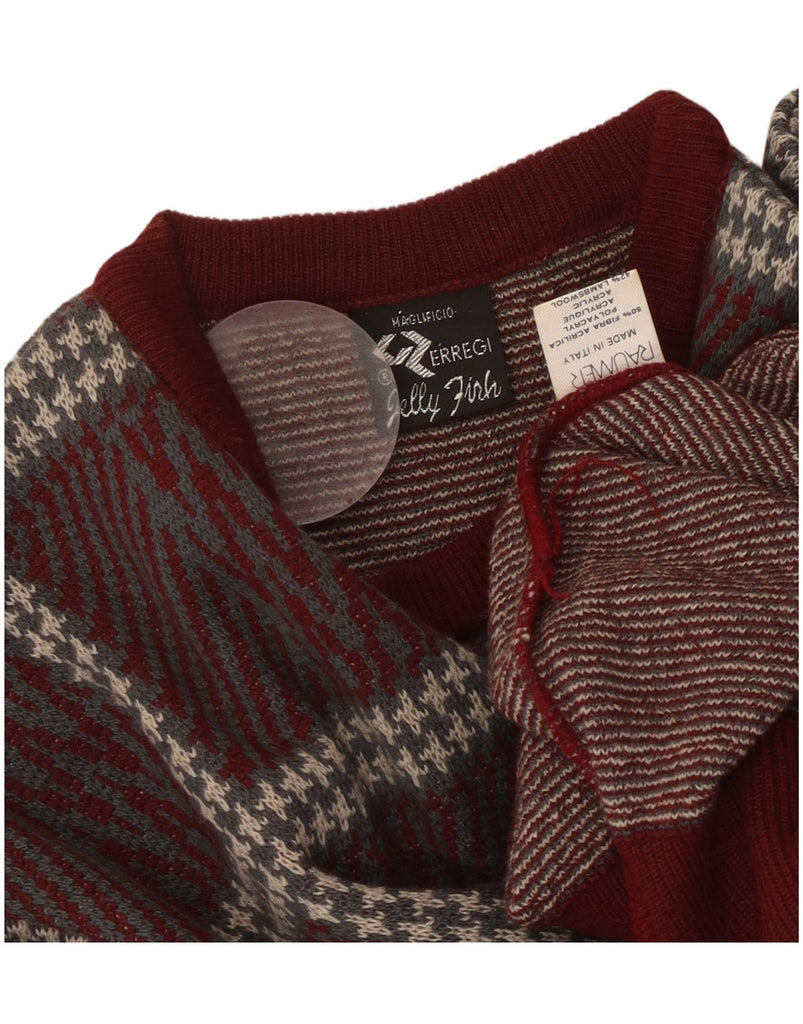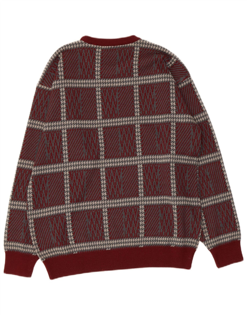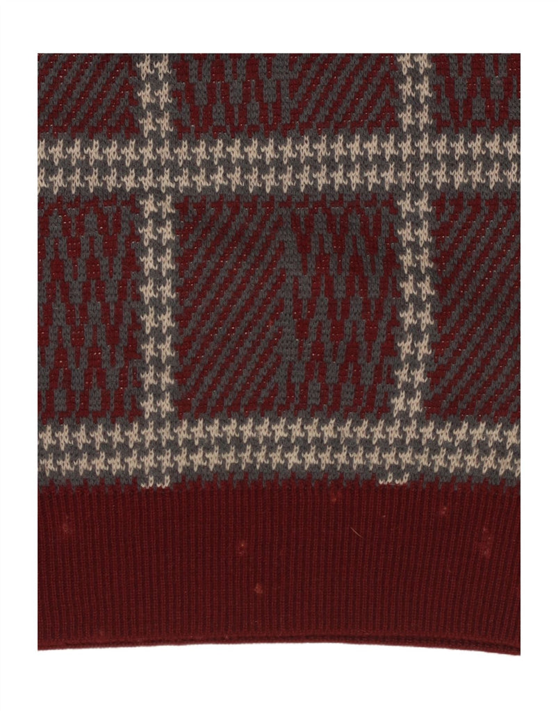 ВИНТАЖНЫЙ женский джемпер с круглым вырезом, Великобритания 14, большой бордовый клетчатый акрил